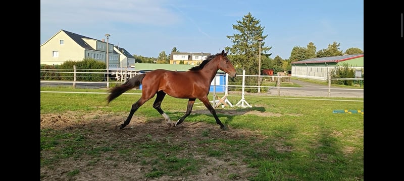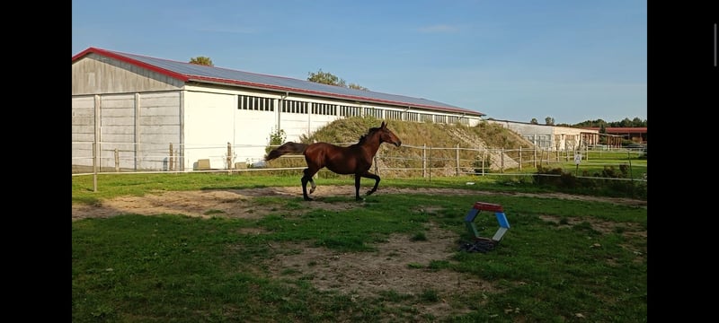 Biete hier meine selbst gezogene Hannoveraner Stute an, Mai 2023 geboren und derzeit ein Stockmaß von 163 cm und sie befindet sich derzeit im Wachstum. Sie stammt ab von Christ x Quaterhall. Sie hat Potential fürs hohe Viereck und genau deswegen gebe ich sie ab. Ich wünsche mir fördernde Hände für sie. Eine tolle Stute mit wunderschönen GGA und mega lieben Charakter. Sie lebt in Offenstallhaltung und kennt alles für ihr Alter entsprechend, alleine spazieren gehen, Verkehr, Trecker alles kein Problem, Hunde und kleine Kinder gewohnt. Regelmäßig dem Hufschmied vorgestellt, kennt ebenso das Anhänger fahren und verladen ist ein klaks.