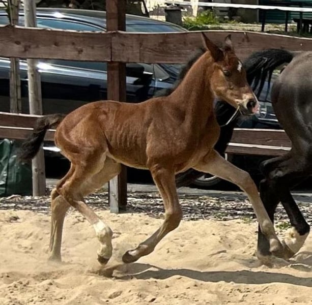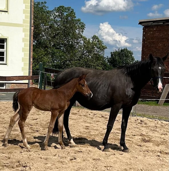 Really great foal in conformation and movement. A rarity in terms of breeding. Bred out of TG by Londontime out of a dam from the Neustadt P line. Dam herself FN performance marebook mare with SLP 7.98. Rideability outside rider 9.0, interior 9.5. A mare with potential for advanced dressage sport and breeding!