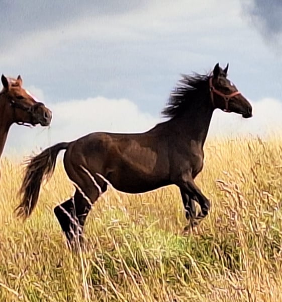 Realmente un gran potro en conformación y movimiento. Una rareza en términos de cría. Criado fuera de TG por Londontime de una madre de la linea Neustadt P. La propia madre es una yegua FN con SLP 7.98. Rideability fuera de jinete 9.0, interior 9.5. ¡Una yegua con potencial para el deporte de doma de alto nivel y la cría!