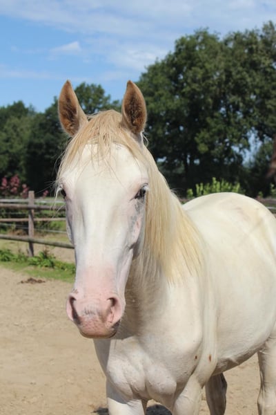 „Elfengleich vom Leisch“ Geboren am 19. Juni 2023 Abstammung: Esquin White x Londonderry x Don Primero Über die Stute: „Elfengleich vom Leisch“ ist eine außergewöhnlich hübsche und vielversprechende junge Stute mit einer einzigartigen Farbveränderung. Geboren als buntes Fohlen, hat sie sich zu einem zarten Cremefarbton entwickelt und trägt nun kleine braune Punkte – sogenannte „Glückspunkte“. Ihre Färbung kann sich weiterhin verändern, was sie besonders interessant für Liebhaber individueller Farbgebungen macht. Seit ihrer Geburt lebt sie in einer großen Stuten-Fohlenherde und wurde nach dem Absetzen in einem Aufzuchtsstall mit gleichaltrigen Fohlen sozialisiert. Sie kennt das Fohlen-ABC, ist halfterführig, entwurmt und regelmäßig dem Schmied vorgestellt. Ihr Charakter ist liebevoll, neugierig und aufgeschlossen. Über die Abstammung: Vater: Esquin White Esquin White ist ein gekörter Hengst mit einer beeindruckenden Abstammung. Er stammt ab von Escamillo – Florencio – Relevant und wurde 2022 in Vechta mit der Sonder-Hengstanerkennung ausgezeichnet. Seine Großmutter Celine ist für die für die Farbgebung ursächliche Genvariante verantwortlich. Sie ist eine Tochter des Rubinstein I – Sohnes Relevant, der mit Lisa Wilcox (USA) sportlich zu den erfolgreichsten Dressurhengsten seiner Generation gehörte und Mannschaftsbronze bei den Olympischen Spielen in Athen (2004) gewann. Mit den Holsteinern Cordeur und Landadel sowie dem in Oldenburg eingesetzten Hannoveraner Manstein folgen in den nachfolgenden Generationen des Pedigrees eine interessante springbetonte Komponente und viel Edelblut. Mutter: Lilie (v. Londonderry) Londonderry war ein herausragender Hannoveraner Hengst, der 2013 zum „Hannoveraner Hengst des Jahres“ gewählt wurde. Er war ein erfolgreicher Vererber mit über 700 Nachkommen, von denen 92 in der schweren Klasse siegten oder platzierten. Londonderry war bekannt für seinen außergewöhnlichen Bewegungsablauf und seine Leistungsbereitschaft. Wichtig ist uns vor allem ein liebevolles und passendes Zuhause. Der Preis ist verhandelbar – bei ernsthaftem Interesse finden wir sicher eine faire Lösung! Faire Angebote sind herzlich wilkommen / VBH Bei Interesse oder Fragen stehe ich Ihnen gerne zur Verfügung. Ein persönlicher Besuch ist nach vorheriger Terminabsprache jederzeit möglich. Wir freuen uns auf Ihre Nachricht