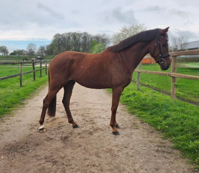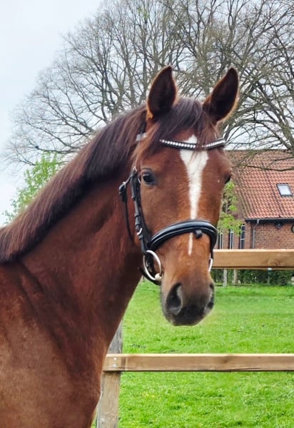 3-year-old mare by Thiago out of a Don Brosco mare (currently 16.1 hh) seeking a new challenge. Thiara was raised in a herd environment, living naturally in a herd during the day and housed in a box at night. She is farrier and loading trained. In handling, she is very straightforward and not spooky. She is well lunged and already accustomed to a rider’s weight in all gaits. She could remain on site for further training. Excellent health certificate!