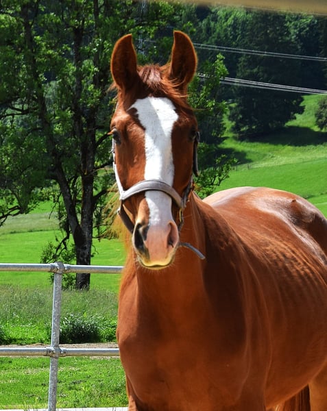 Due to the discontinuation of her horsekeeping, this tall-legged, 2-year-old mare by ESCANTO PS out of BENICIO is for sale. A very sweet, affectionate, and people-oriented mare, completely clear-headed and very resilient, with excellent gaits. She is tall, elegant, correct, very brave, and full of charm. She is sure to become an outstanding riding horse! Raised in an open stable, she is also accustomed to staying in a box at night. Regularly wormed, vaccinated, and presented to the blacksmith. Born April 2023, chestnut, still unbroken. Available at a fair price to good hands, no dealers or riding schools. Price only after telephone contact. Lineage from the SCHLIESSERIN mare, one of the best Hanoverian mare lines! Videos available upon request and only with full name, address, and WhatsApp number.