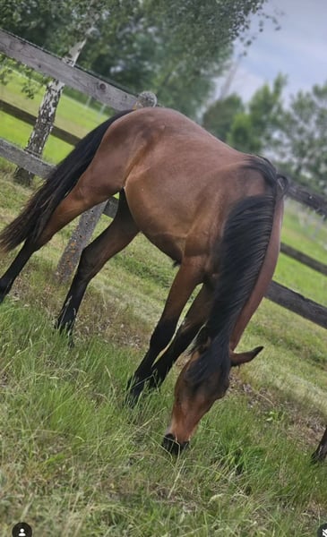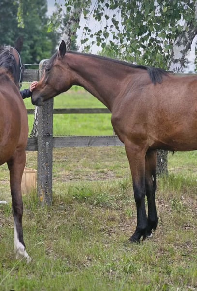 If you’re not actually looking to sell... Some horses quietly grow into your heart—and this mare, born in May 2023, is exactly one of those. She is by Diacontinus out of a mare with Qualito x Viscount bloodlines. Not only does she possess three very good basic gaits and a correct, powerful conformation, but she also has something that cannot be bought: character. Always friendly, curious, and attentive to humans, she seeks closeness, observes carefully, and approaches new situations bravely and fearlessly. With her strikingly long legs, a stunning, harmonious build, and a very elegant, expressive face, she is a true eye-catcher. Currently standing at approximately 16.1 hh, she is short, compact, and very correctly built. She is rooted on a solid foundation—featuring excellent legs and large, correct hooves that give you a good feeling every day. The mare has been raised in a natural, age-appropriate manner. She is familiar with halters, leading, and the farrier, always showing herself to be well-behaved, curious, and uncomplicated. Her temperament is absolutely friendly, open-minded, and very human-oriented. Health-wise, she has never had any issues, shows no external abnormalities, and is regularly dewormed. She is raised as young horses should be: in a species-appropriate open stable environment with 24/7 turnout, plenty of movement, and social contact. That’s precisely why this decision is so difficult. Not because she lacks sporting potential—on the contrary: jumping, eventing, dressage, amateur or professional sport—everything is open to her. Whoever gives this raw diamond time to mature and begins her training with patience, calmness, and solid, horse-friendly knowledge will gain a lifetime partner of absolute dream quality. I am looking for a genuine 5-star home for her, with plenty of turnout, time, and understanding. She will not be sold into box stall housing with only a few hours of turnout, nor under any circumstances that compromise her well-being. Neither will she be sold abroad. Location: 39356 Price: €12,500 negotiable This listing is not an urgent sale. It’s a release into the right hands. If you are looking for a young horse that possesses not only talent but also heart, please feel free to contact me by phone—but only if you truly understand what it means to give her a real home.