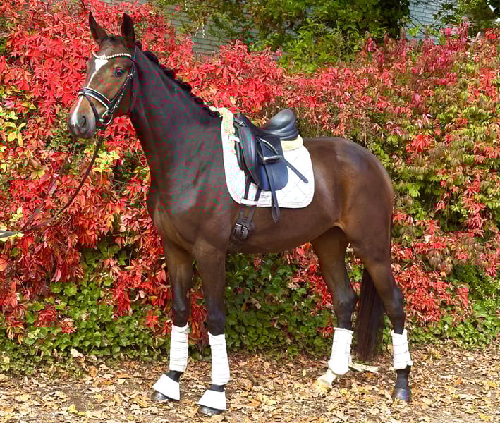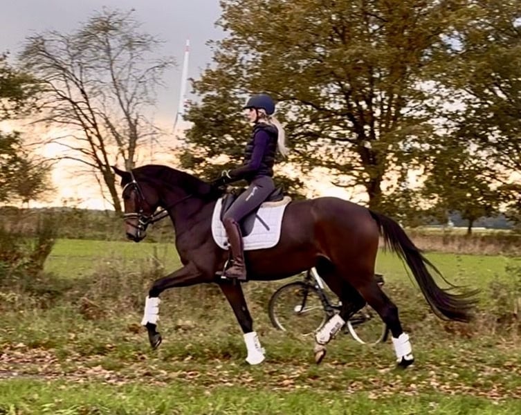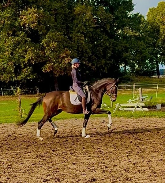 Sambini est une jument très élégante et bien dressée, dotée de trois allures de base excellentes. Elle vient directement du élevage et est très courageuse et facile à monter. Sambini connaît également déjà le terrain et les petits sauts ne lui posent aucun problème. Un certificat de santé avec radiographies du dos est disponible. Pour toute demande, veuillez me contacter par téléphone ou WhatsApp au 01602428444. Les emails sont difficiles à répondre en raison de contraintes de temps.