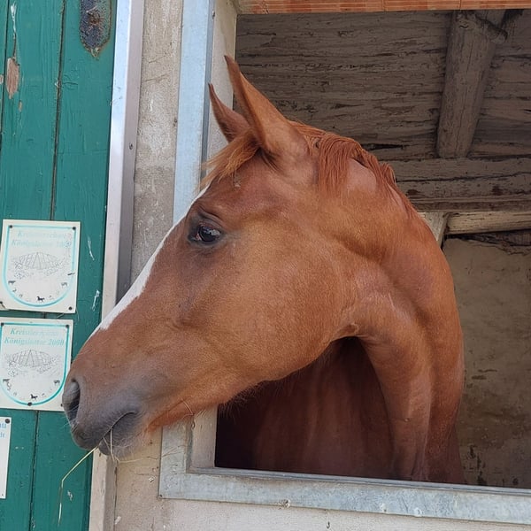 Na sprzedaż, z powodów osobistych, ta wyróżniająca się klacz. Jest jeszcze całkowicie nieoswojona. Rodowód: Shu Fu x Dauphin Wzrost około 1,70 m Kompletnie zaszczepiona przeciwko tężcowi, grypie, herpesowi i wirusowi West Nile. Zapraszam do odwiedzenia i poznania tej towarzyskiej klaczy! Tel.: 0160 2972603, również możliwy kontakt przez WhatsApp.
