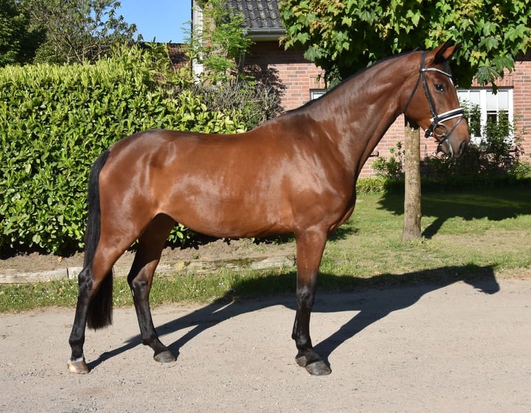 Diese bildschöne, großrahmige Stute vereint moderne Sportlichkeit mit bester Genetik: Abstammend vom Bundeschampionats-Sieger Damaschino und als Vollschwester zum gekörten Davidoff bringt sie alles mit, was man sich für eine Karriere im Viereck oder in der Zucht wünschen kann. Highlights: - Drei überragende Grundgangarten mit natürlichem Takt und Bergauftendenz - Stutenleistungsprüfung: Rittigkeit 9,0, Grundgangarten 8,08, Interieur 8,67 Elastizität, Arbeitseinstellung und Präsenz – Tag für Tag ein echtes Vergnügen Nach einer entspannten Sommerkoppel bereiten wir sie nun schonend auf ihre erste Turniersaison 2026 vor. Ein Pferd für den großen Sport – oder für die anspruchsvolle Zucht.