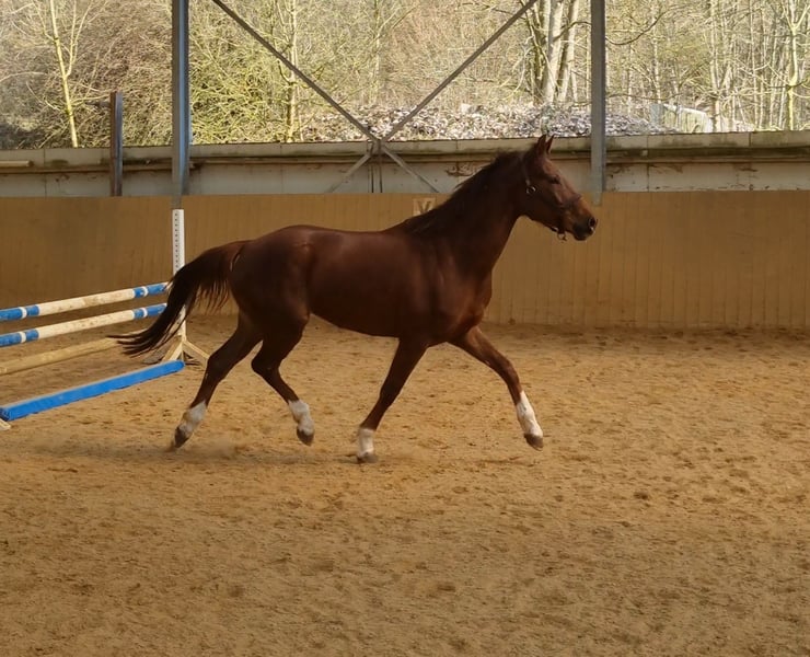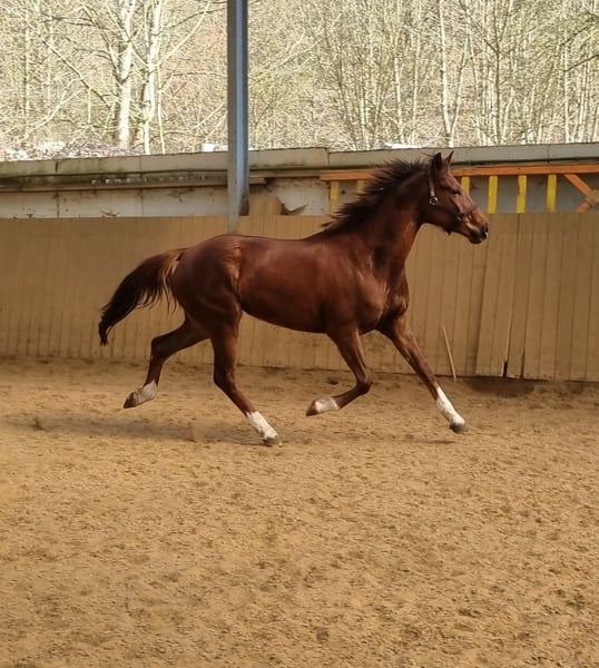 Zum Verkauf steht eine wunderschöne vierjährige Hannoveraner Stute von Flashbang x Vivaldi x Fidertanz. Flashlight besitzt tolle Grundgangarten und ist sicher angeritten, nun ist sie bereit für ihre weitere Ausbildung. Außerdem zeichnet sie sich durch einen tollen, ehrlichen und unerschrocken Charakter aus. Mit anderen Pferden ist sie sehr gut verträglich, ebenso Schmiede- und verladefromm. Bei Interesse schreiben Sie mir gerne eine Nachricht