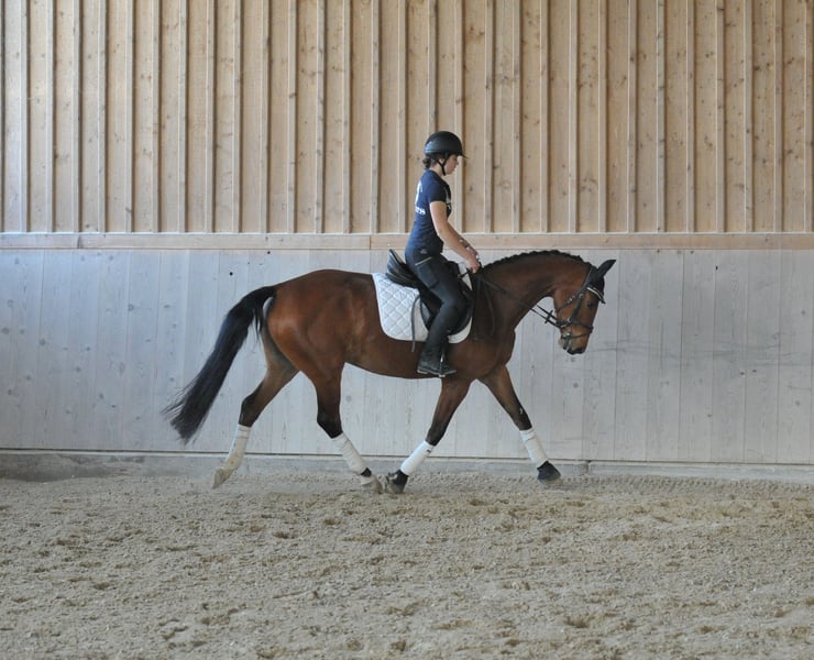 Encantadora y elegante yegua Hannoverana con 3 buenos GGA, muy bien criada por el famoso semental Scolari, que transmite una buena sensación de monta. Fácil de llevar por el cuello, adecuada tanto para doma como para salto.