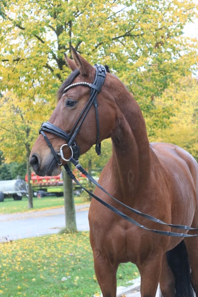 Zum Verkauf steht diese 4-jährige charmante Stute von Von und Zu aus einem sehr bewährten und erfolgreichem Stutenstamm. Die Stute überzeugt mit drei gleichmäßig guten Grundgangarten, einer tollen Rittigkeit und ihrer positiven Einstellung. Sie ist mit dem nötigen "Go" ausgestattet und immer motiviert und engagiert bei der Arbeit. Sie möchte zu jeder Zeit alles richtig machen und ihrem Reiter gefallen Im Umgang weiß sie mit ihrer angenehm zurückhaltenden und gleichzeitig aber auch neugierigen und aufgeweckten Art die Leute um den Finger zu wickeln. Sie ist dieses Jahr zweimal in Reitpferdeprüfungen gestartet und hat sich dort auch zweimal platziert (Einzelnoten bis 8,0). Außerdem kennt sie das Reiten im Gelände und hat bereits mit Reiter einen kleinen Parcours gemeistert, wurde hier aber nicht weiter gefördert. Hier reift ein ganz tolles Familien- & gleichzeitig besonderes Nachwuchspferd heran, dem bei der richtigen Förderung alle Türen offen stehen. Aufgrund ihrer Größe wäre sie ein tolles Mädchen- & Damenreitpferd. In reiner Boxenhaltung koppt sie gelegentlich, weswegen sie weit unter Wert abgegeben wird. Vorzugsweise abzugeben in Hände mit Offenstallhaltung.