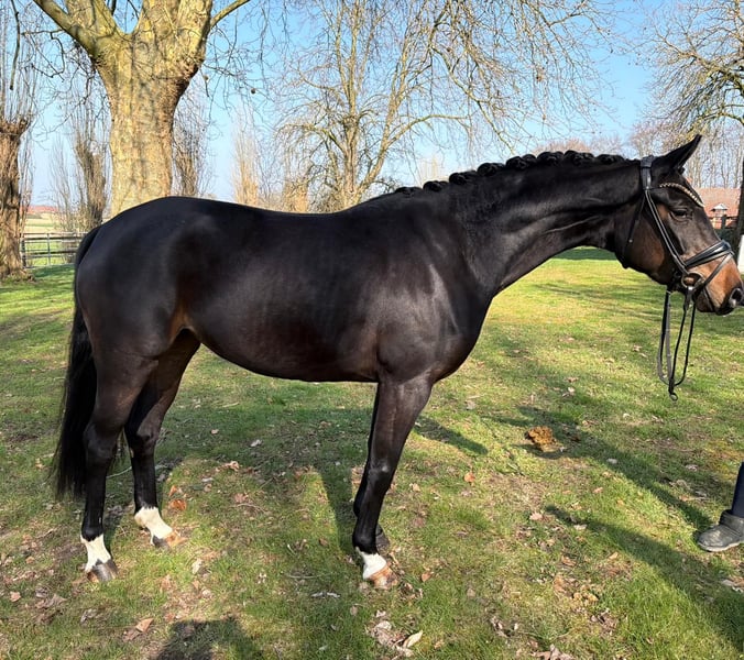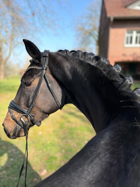 Zum Verkauf steht eine selbstgezogene, dunkelbraune Stute von For Romance aus einer Londonderry Mutter. Sie hat ein aktuelles Stockmaß von ca. 1,63 m. Die Stute überzeugt mit drei reellen, taktsicheren Grundgangarten und einem sehr angenehmen Bewegungsablauf. Sie ist brav im Umgang, menschenbezogen und dabei dennoch mit einem gesunden „Go“ ausgestattet – ideal für Reiter, die ein motiviertes, aber dennoch unkompliziertes Pferd suchen. Seit Anfang Januar ist sie unter dem Sattel und zeigt sich dort sehr lernwillig, ausgeglichen und stets zuverlässig. Sie entwickelt sich kontinuierlich positiv und bringt eine solide Basis für ihre weitere Ausbildung mit. Bei Interesse freuen wir uns über eine Nachricht, ausprobieren ist jederzeit möglich.