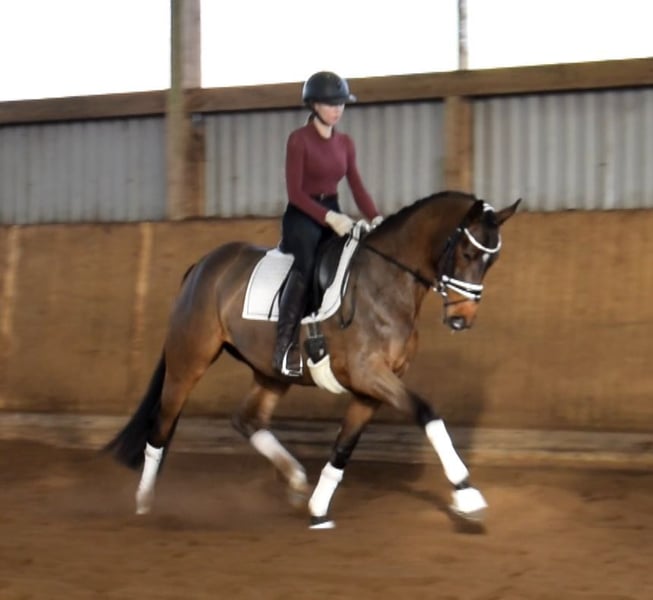 Eine Tänzerin die man selten findet! Wunderschöne, ausdrucksstarke Stute ausgestattet mit sehr raumgreiffenden Schritt, eine bergauf Gallope und Trab mit sehr aktiven Hinterbein und Versammlungsbereitschaft . Vajana hat tollen Charakter und ist sehr leichtrittig und lernbereit. Ein Pferd, das sich bestimmt toll ausbilden lässt. Sie ist wie geschaffen sowohl für den anspruchsvollen Dressursport als auch für Amateurreiter. Sie ist altersentsprechend sehr gut ausgebildet und auf dem Weg zu Dressurpferde -A-. Vajana wird in der Halle und auf dem Aussenplatz geritten und präsentiert sich dort absolut unkompliziert. Sie ist z.Z. 164 cm und im Wachstum. Durch ihren sehr korrektem Exterieur, gut angesetztem Hals wirkt sie unter dem Reiter größer und deckt auch größer Reiter sehr gut ab. Probereiten jederzeit nach Absprache möglich. Mehr Infos finden Sie auf unserer Homepage. Hof Heisterbusch Team.