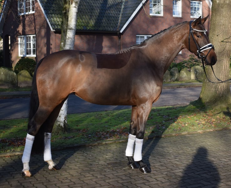 Tancerka, której trudno znaleźć! Piękna, wyrazista klacz o bardzo przestrzennym chodu, z górnym galopem i stępem, charakteryzująca się bardzo aktywnymi tylnymi kończynami i gotowością do zbioru. Vajana ma wspaniały charakter, jest bardzo lekko jezdna i chętna do nauki. To koń, który z pewnością dobrze się nadaje do wszechstronnego szkolenia. Jest stworzona zarówno dla wymagających zawodów ujeżdżeniowych, jak i dla jeźdźców amatorów. Jest odpowiednio wytrenowana jak na swój wiek i zmierza ku poziomowi końi sportowych klasy "A" w ujeżdżeniu. Vajana jest jeżdżona zarówno w hali, jak i na padoku, i tam zachowuje się absolutnie bezproblemowo. Obecnie ma około 164 cm w kłębie i nadal rośnie. Dzięki bardzo poprawnej budowie i dobrze osadzonemu karku, pod jeźdźcem wydaje się wyższa i dobrze pokrywa również większych jeźdźców. Możliwość jazdy próbnej po wcześniejszym umówieniu. Więcej informacji na naszej stronie internetowej. Zespół Hof Heisterbusch.