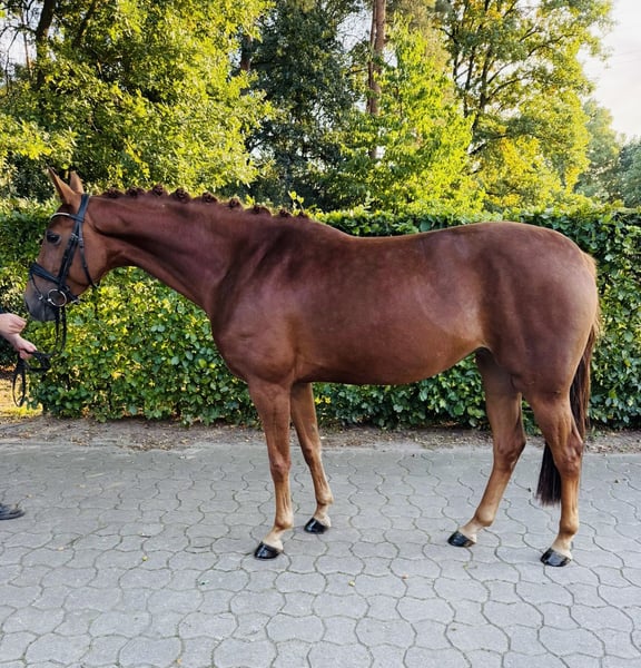 Zum Verkauf steht eine bildschöne, 4-jährige Hannoveraner Stute mit besten Voraussetzungen für eine erfolgreiche Zukunft im Sport, Freizeit oder in der Zucht. Diese junge Dame überzeugt durch drei gute Grundgangarten, ein aktives Hinterbein sowie viel Elastizität und Schwung. Sie präsentiert sich stets lernwillig, nervenstark und mit einer positiven Arbeitseinstellung. Aktuell befindet sie sich in professioneller Ausbildung und entwickelt sich täglich weiter. Röntgenbilder ohne Befund liegen vor und können bei ernsthaftem Interesse eingesehen werden. Ein Kennenlernen ist nach Absprache jeder Zeit möglich.