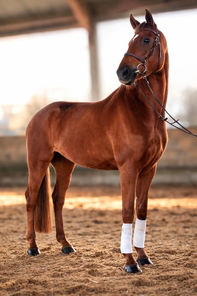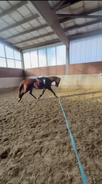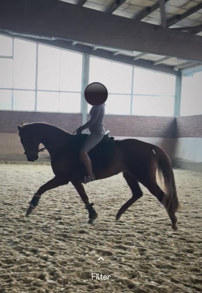 Bewegingssterke 4-jarige dressuurmerrie met perspectief voor sport en opleiding Typvolle Hannoveraanse vosmerrie (04/2022) met ongeveer 1,65 m stokmaat, afkomstig uit een sterk sportlich geslacht (Baron x De Niro x Weltmeyer). Voorzien van drie goede basisgangen, actief achterbeen en een zeer goede werkwil. Ze is sinds eind vorig jaar voorzichtig in opleiding en overtuigt door leergierigheid, zenuwsterkte en rijbaarheid. Een jonge paard met personality en go, dat met verdere begeleiding kan uitgroeien tot een zeer interessante partner voor de dressuursport. Kent uitloopstal en box, is herd-compatibel, verladeerbaar en vertrouwd met de hal, piste, longeerbak en longeerwerk. Voor ervaren ruiters die plezier hebben in de opleiding van een kwaliteitsvol jong paard. Ook interessant voor fokkers. €12.000 VB 📍 Locatie: [59399]