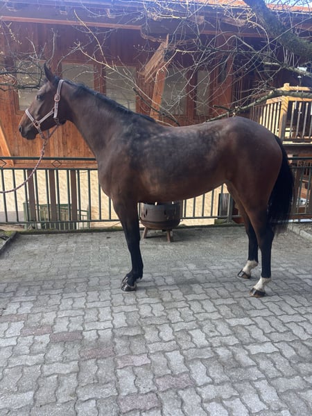 Vierjährige, unverbrauchte gesunde Springstute mit hervorragender Abstammung zu verkaufen. Die junge Stute wird aktuell schonend anlongiert und angeritten ist jedoch noch roh. Im Umgang zeigt sie sich brav, unkompliziert und menschenbezogen. Der Verkauf erfolgt aufgrund der Auflassung der Springpferdezucht.