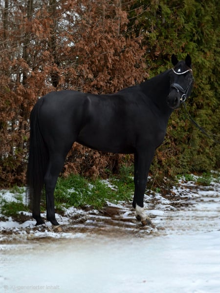 Traumhafte Rappstute mit Perspektive direkt aus Züchterhand! In my Mind x Sir Donnerhall, 165 groß. Ein richtig tolles Nachwuchspferd für ambitionierte Dressurreiter/innen. Ihr Halbbruder wurde Gekört und erfolgreich über eine Auktion verkauft. Die Stute befindet sich aktuell auf Dressurpferde A-Niveau, hier konnte sie sich auch bereits auf dem Turnier platzieren. Sie zeigt sich in jeder Lebenslage souverän, ist absolut brav im Umgang und überzeugt durch ihre positive Einstellung zur Arbeit. Sie ist artgerecht und liebevoll aufgewachsen, wurde sorgsam sowie professionell angeritten und regelmäßig gefördert. Ein guter Röntgen-TÜV liegt vor.