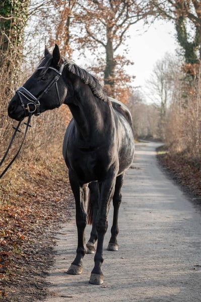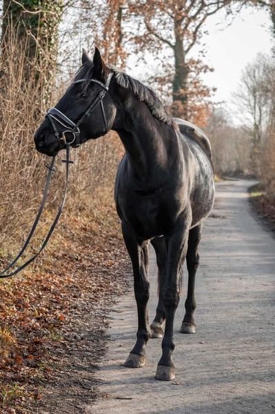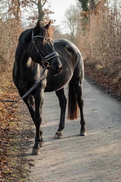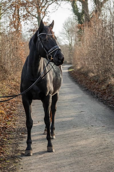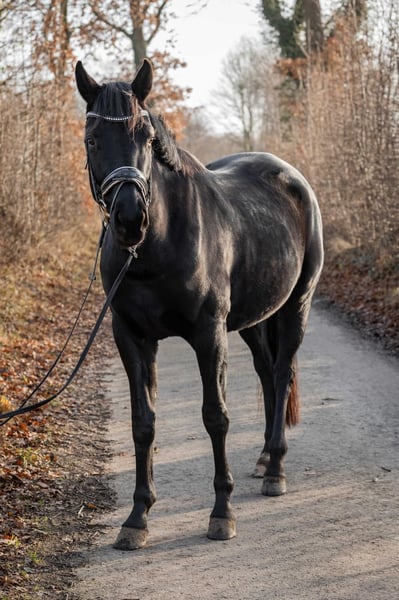 Expressive young dressage mare with excellent pedigree For sale is a tall, talented young mare with outstanding potential for dressage. She currently measures approximately 16.1 hh and is still growing in accordance with her age. The mare is entered for a competition in March 2026. She has already received solid basic training, with particular emphasis on foundational work, calmness training, and fine, correct aids. She consistently demonstrates attentiveness, willingness to learn, and motivation – an unspoiled young horse with an excellent character and great development potential. Special features: - Dressage-oriented, expressive movement - Balanced and relaxed temperament - High rideability and quick comprehension - Strong work ethic combined with a clear mind - Pleasant, cooperative nature In daily handling, the mare presents as friendly, personable, and uncomplicated. She is socially compatible within the herd and impresses with her calm and balanced demeanor. She is barefoot, familiar with both pasture and stable life, and easily integrated into 24/7 turnout. - No known intolerances - No vices - No known health issues A pre-purchase examination can be arranged at any time upon request. This honest and talented young mare combines quality, rideability, and character, making her suitable for both ambitious leisure riders and competitive dressage riders. She already captivates with her impressive presence, elegance, and charisma. She also proves to be reliable in the field: she rides alone in the terrain and remains calm and confident at all times. 📍 Further information, videos, and a personal introduction are available upon serious inquiry.
