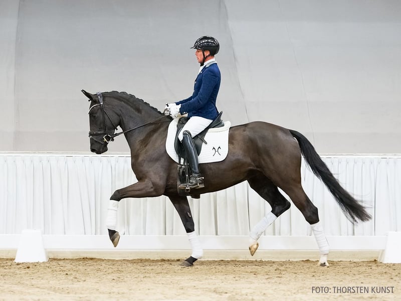 Tobitha ist ein extravaganter Dressurnachwuchs der absoluten Spitzennorm. Bewegungseleganz, hervorragende Reiteigenschaften und ihr harmonischer Habitus sprechen für sich. Bereits siegreich mit ihrer Reiterin Carolin Seifert-Miserre in Reitpferdeprüfungen, zeigt sie vielversprechendes Potenzial für die sportliche Zukunft. Aus der direkten Mutterlinie stammen u. a. die beiden gekörten Hengste Livorno v. Livaldon (DRE: S*** mit Franziska Haase) und Hampton Court v. His Highness. Sportname: Tobitha Turniererfolge: RPF: 2/1. 1. Generation Aufbauprüfungen Dressur: Van den Hoek v. Vilancio (DRE: L). Auktionspferde: HannPr Vicky v. Vilancio (VA 2020). 2. Generation Sportpferde Dressur: gek. Hengst Livorno 64 v. Livaldon (DRE: S*** mit Franziska Haase,Verden 2017,HM 2017); Usambara S v. United (DRE: M** mit Jessica Hepp); Die Eine 4 v. Dubarry (DRE: M* mit Christina Aumüller); gek. Hengst Hampton Court v. His Highness (DRE: M** mit Sabine Börker-Müller,Kreuth 2007). Aufbauprüfungen Dressur: Royal Selection 3 v. Baron (DK) (DRE: L); Lessino v. Lissaro (DRE: L); gek. Hengst Torriani 2 v. Temptation (DRE: L,Vechta 2013); gek. Hengst Fürst Bolero/von Fürst Grandios v. Fürst Grandios (DRE: L,Verden 2010,HM 2010). Besondere Sportergebnisse: StPrA Her Majesty v. His Highness (Championat f. Reitpferdeohne Mindestleistung Kat.A 2007,VA 2009,Herwart von der Decken-Schau Verden 2007); Dolores/Dolores 118 v. Davignon I (Bronze Bundeschampionat f.Reitpferde o.M. 1998,Championat für Reitpferde m.M. 1998,VA 1998: 50.000 €,Louis Wiegels-Schau Hohenhameln 1997). gekörte Hengste: gek. Hengst v. Dante Weltino (München-Riem 2019). Auktionspferde: First One v. Fürst Nymphenburg (VA 2012); Rudi v. Rousseau (ex: Rambo) (VA 2011); Sweet Choice v. Stedinger (FoVA 2006); Hamlet 65 v. Hochadel (VA 2010); Don Reena v. Donnerhall (VA 2006); gek. Hengst Desperado/Desperado 79 v. Davignon I (HM 1996); Format A.S. v. Fabriano (VA 1996). Bes. Prämientöchter: HannPr Vanadis/Vanadis 8 v. Valverde; StPr Rose Baccara v. Rousseau (ex: Rambo); StPr Rosi v. Rotspon; StPr Namibia/Namibia 3 v. Natiello; StPr Rena/Rena 53 v. Regazzoni. 3. Generation Sportpferde Dressur: Fame/Fame 119 v. Fabriano (DRE: M** mit Sieke Huth). Sportpferde Springen: Crass Clausi v. Cellestial (SPR: int. 1,40 m mit Thomas Weinberg); Checkmoon ASK v. Conthargos (SPR: int. 1,30 m mit Renee Ulvsbjerg); Cayenn Pepper Peba v. Cellestial (SPR: 1,35 m mit Rene Rückert); Cowaro Pe-Ba v. Chacco-Blue (SPR: 1,30 m mit Frieda Grieß); Werle/Werle 2 v. Werther (SPR: M mit Rückert,Rene). Aufbauprüfungen Dressur: Daturo v. Desperados (DRE: L); gek. Hengst Well-done v. Welser (DRE: L,Verden 2002,HM 2002). Aufbauprüfungen Springen: Convoi 5 v. Come and Fly (SPR: 1,30 m mit Anna-Katharina Hildebrandt); gek. Hengst Lancario v. Lancado (SPR: L,Redefin 2008); StPr Curly Joe Peba/Curley Joe Peba v. Cellestial (SPR: L). Besondere Sportergebnisse: StPr Baccarole/BACCAROLE 5 v. Bolero (Championat für Reitpferde m.M. 1990,Siegerstute Louis Wiegels-Schau Heiligenfelde 1989,Siegerstute Europaschau Brüssel 1990,Bundesschau Verden 1990,Europaschau Brüssel 1990,Bundesschau Warendorf 1994,Bundesschau Warendorf 1994,Ratje Niebuhr-Schau Verden 1994). gekörte Hengste: gek. Hengst Wunder Knabe/von Welser v. Welser (Verden 2003). Auktionspferde: What a Chance/What a chance v. Werther (FoVA 1995); Alina/Alina 78 v. Amoroso (VA 1998); Big Boy Bonito v. Borneo (VA 1996,HM 1994); Bolschoi 9 v. Bolero (VA 1994). Bes. Prämientöchter: StPr Amorosa/Amorosa 2 v. Amoroso; StPr Bajadere/BAJADERE 10 v. Bolero (Louis Wiegels-Schau Heiligenfelde 1989,Bundesschau Verden 1990,Ratje Niebuhr-Schau Verden 1994). 4. Generation Sportpferde Dressur: gek. Hengst Walhall/Walhall 5 v. Waldhorn (DRE: S mit Fratschner,Friedr.Dr.,Verden 1979,HM 1979). Sportpferde Springen: Tannenzapfen v. Tannenberg (SPR: M mit Stura,Manfred 2606). Auktionspferde: Duell 76 v. Derneburg (VA 1977). Bes. Prämientöchter: StPr Waleska v. Waldhorn (Ratje Niebuhr-Schau Verden 1985,Ratje Niebuhr-Schau Verden 1988,Louis Wiegels-Schau Heiligenfelde 1989,Bundesschau Verden 1990,Ratje Niebuhr-Schau Verden 1994). 5. Generation Sportpferde Dressur: Karajan 28 v. Sixtus (DRE: Grand Prix mit Michael Rohrmann,Dressurprüfung Kl. S*** - Grand Prix Kür - 2008,Dressurprüfung Kl. S- Grand Prix de Dressage 2007,Dressurprüfung Kl. S- Grand Prix Kür - 2006,Dressurprüfung Kl. S- Grand Prix de Dressage 2006); gek. Hengst Kasimir/Kasimir TSF v. Ivernel (DRE: int. S** mit Bernadette Brune,Deutsche Meisterschaft Junge Reiter Dressur 2011,Nationenpreis Dressur Kl.S Junge Reiter -international- 2011,Championat f. Reitpferdeohne Mindestleistung Kat.A 2005,Neumünster 2004); gek. Hengst Karolinger I/Karolinger TSF v. Latimer (DRE: S*** mit Jennifer Weber,Bundeschampionat f.Reitpferde m.M. 2005,Championat f. Reitpferdeohne Mindestleistung Kat.A 2005,Kerken 2004); StPrA Delores v. De Value (DRE: S** mit Bernd Schopf); Kiriakos TSF v. Elfado (DRE: S*** mit Kathleen Kröncke,Championat f. Reitpferde 2016,Championat f. Reitpferde 2015); Kronos 63 v. Ivanhoe (DRE: S** mit Andrea Hanisch); Küstenjunge v. Elfado (DRE: S** mit Kim-Elisabeth Bendfeldt,Deutsches Amateur-Championat Dressur 2022); Kornett/Kornett 88 v. Starway (DRE: S** mit Kim Pfeiffer); gek. Hengst Konradi/Konradi TSF v. Charly Chaplin (DRE: S** mit Peter Koch,Alsfeld 2016); Kanzler Klaus v. Hohenstein (DRE: S** mit Jürgen Böckmann); Kreon 17 v. Hamilton (DRE: S* mit Sarah Scheuermann); Sommermond/Sommermond 2 v. Sorento (DRE: S* mit Valeska Hauptmann); So Cute v. Sorento (DRE: S* mit Carina Leinemann); Weltenfürst v. Weltmeyer (DRE: S* mit Johannes Lieb); Herz Klassik v. Hertug (DRE: S* mit Meike-Kristine Pratschke); Kaspian v. King Arthur (DRE: S* mit Hannes Lütt,SPR: L,Championat f. Reitpferde 2009); Friendly Fire v. Ferragamo (DRE: S* mit Michaela Herrmann,SPR: 1,30 m mit Michaela Herrmann); Cornett 43 v. Tümmler (DRE: S mit HESSEN,HEINR.-DONATHUS V.,DM-Wert.Jun.Dress.Kl.