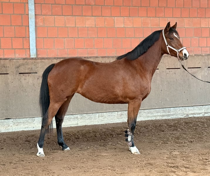 Zum Verkauf steht eine schicke 4 jährige Stute von Perigueux x Valentino. Die Stute wurde als Fohlen vom Züchter gekauft und ist auch dort weiter aufgewachsen. 3 jährig wurde sie schonend eingeritten und hat anschließend den Sommer auf der Weide verbracht . Nun ist sie wieder im Stall und langsam wieder im Training. Sie ist eine sensible und gehfreudige Stute. Im Umgang hat sie einen guten und einwandfreien Charakter . Die Springtechnik ist gut und schnell. Manchmal steht sie sich auf Grund ihrer Energie noch etwas selbst im Weg, aber dies bessert sich. Auf Grund von Familienzuwachs suchen wir ein gutes zu Hause für die Stute . Ein Züchter TÜV liegt bereits vor . Weitere Fragen gerne per Nachricht oder Telefon .