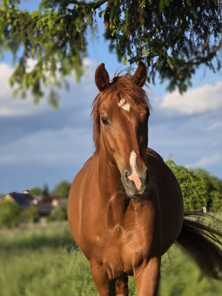 Vicky was born in 2022 and has been gently raised in a small herd. She is full of trust, stress-resistant in traffic, and knows the basics. She is very people-oriented. She moves with a lively and energetic push from the hindquarters and is very rhythmic. Vicky is still untrained and would like to start working slowly, but with her interesting pedigree, she is also suitable for breeding. A radiographic examination is already planned.