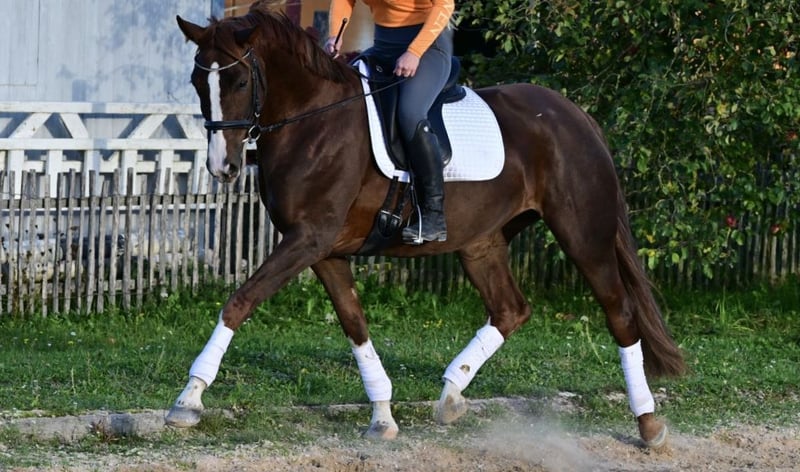 * V.: Rotspon x Donnerball - Donnerhall, Rosenkavalier, Florestan I, Rubinstein I, Weltmeyer, Focus… * 2021 geboren * Stute * zur Zeit 1,68m Stockmaß * Herdenvertraglich * Verladefromm * Schmiedefromm * von 15j. Jugendlicher geritten * im Gelände artig * unerschrocken * Würzburg * Transport gegen Aufpreis möglich * Beritt möglich * Große AKU für ca. 800,- * im Auftrag Diese Stute ist ein richtiger Hingucker. Totschick im schönen Dunkelfuchs Lack, mit einer herrlichen Aufmachung. Super artig im Umgang, lässt alles mit sich machen und ist sehr aufgeschlossen, freundlich und immer interessiert. Beim Reiten sehr angenehm zu sitzen. Gleicht einem Sofa. Sie ist sehr harmonisch zu reiten für die kurze Zeit unterm Sattel. Im großen und Ganzen ein unfassbar schönes Reitgefühl. Das Go muss sie noch ein bisschen üben. Der Schritt ist wirklich sehr gut, im Galopp zeigt sie immer wieder eine schöne Bergauf Tendenz. Es wird aber kontinuierlich besser. Sie wurde schon von einer 15 j. Jugendlicher geritten und war schon ganz brav alleine und in der Gruppe im Gelände. Es werden nur ordentliche Anfragen mit ernsthaftem Interesse beantwortet. Auf unverschämte Anfragen wird nicht eingegangen. Für das Probereiten nehmen wir 25,-, welches beim Kauf verrechnet wird. Anfänger nur mit Begleitung des erfahrenen Trainers. Preis steigt entsprechend der weiteren Ausbildung.