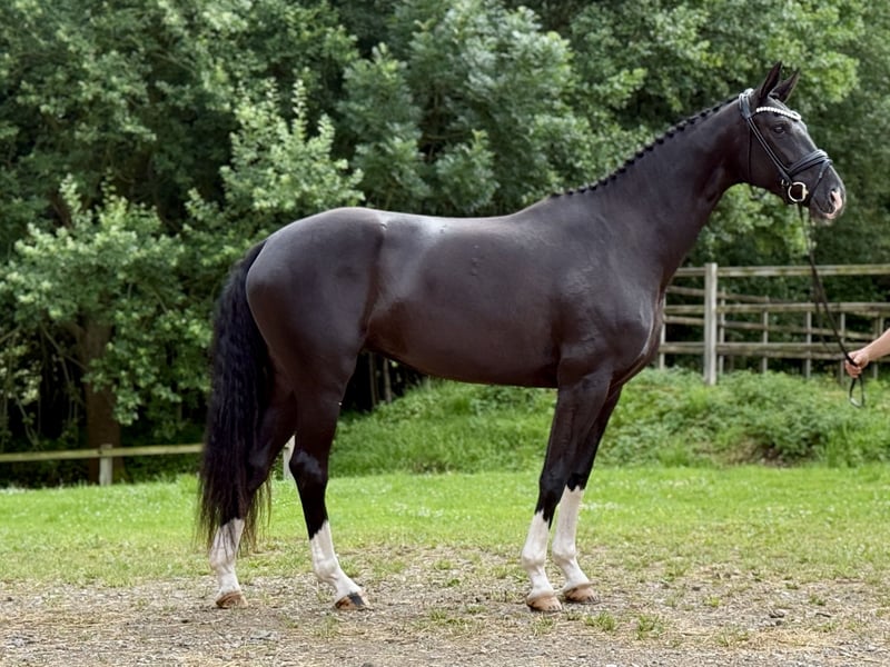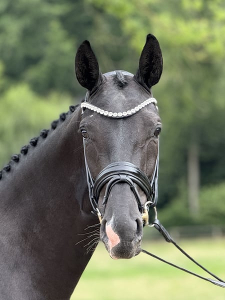 Ausdrucksstarke, gerittene 4-jährige Stute (Staatsprämienanwärterin) mit erstklassiger Abstammung Diese 4-jährige Zuchtstute überzeugt durch ihre hochinteressante Genetik und einen sehr guten, leistungsgeprägten Stutenstamm. Väterlicherseits stammt sie von Fürst Toto, einem modernen Vererber mit überragender Dressurveranlagung. Die Mutterseite wird durch Bon Coeur als Muttervater zusätzlich veredelt und steht für Rittigkeit, Typ und sportliche Qualität. Besonders hervorzuheben ist der starke Mutterstamm: Die Mutter der Stute war Reservesiegerin der Herwart von der Decken-Schau, was die züchterische Qualität und Korrektheit dieser Linie eindrucksvoll unterstreicht. Dem sehr interessanten Mutterstamm entspringt unter anderem der gekörte Hengst Sanceo, der unter Sabine Schut Kerry (USA) bei den Olympischen Spielen in Tokio die Team Bronzemedaille und in der Einzelwertung den vierten Platz belegte. Eine hochwertige Zuchtstute für ambitionierte Züchter, die auf bewährte Leistungsgenetik, Typ und Perspektive setzen – ideal zur Weiterführung eines erfolgreichen Stutenstamms. Weitere Informationen ausschließlich telefonisch.