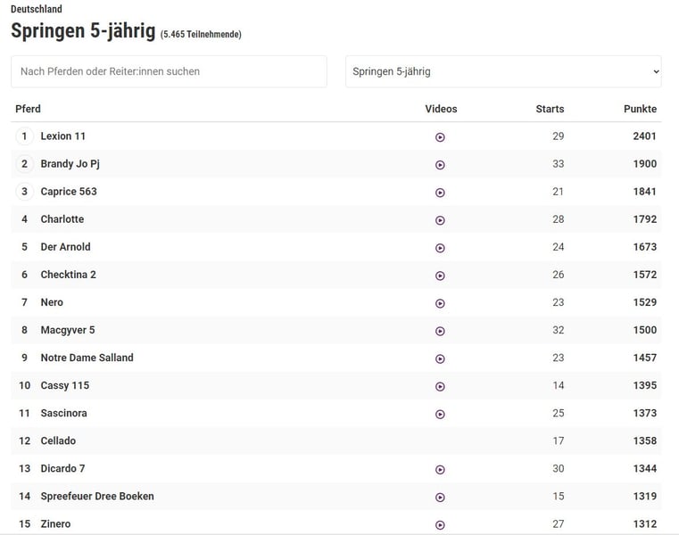 Ziri - ¿qué más podría desear el corazón de un atleta? Una fantástica y exclusiva yegua de la primera cosecha de nuestro semental Zinero. Este a su vez sale de la primera cosecha de Zinedream (ya mega exitoso este año con David Will). Esta sangre es muy buscada y se ha probado muchas veces en competiciones. Zinero (prueba de 50 días terminada con 8.54) transmite un increíble número de sus mega cualidades a sus potros (manejabilidad, compostura, super galope, habilidad, maneras, voluntad de rendimiento - todo muy bien valorado por él). En nuestra opinión, Ziri es la mezcla "perfecta" de la disposición de su madre (Escudo I) y su padre/Zinero. Es increíblemente curiosa, orientada a la gente y abierta de mente y sin duda se abrirá camino en el deporte. Este anuncio es la oportunidad actual de asegurarse un campeón del mañana en una fase temprana y de montarlo y entrenarlo según sus propias ideas. Anteponga claramente el lugar al precio. Aunque "la tacañería está a la orden del día", este caballo no se venderá por menos. Definitivamente también un "caballo de señoras" ya que tiene una estrecha relación con mis hijas. Por favor, pregunte por correo electrónico o WhatsApp. Los caballos son actualmente todavía en el pasto y estará en el establo en aproximadamente 3-4 semanas. Ziri podría ser recogido entonces. Sería genial darle el invierno para aclimatarse y en la primavera se puede entonces tomar en la formación o posiblemente tener un potro primero. Ella es un verdadero rayo de sol. Por favor envíe su propio precio de venta a través de PN. Para aquellos que decidan "rápidamente", un bono de semental de Zinero (top 15 Rimondo ranking 2023) sería posible para el próximo año.
