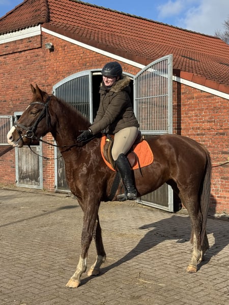 Wir verkaufen aus eigener Zucht unsere 4 jährige Stute Carluna Blue. Abstammung : Chaccothage Blue PS x Landsieger. Carluna wird von uns selber schonend angeritten. Ein Pferd was im Umgang unkompliziert ist. Sie ist sehr Menschen bezogen. Calunas Mutter steht bei uns im Stall und wir haben sie selber im Sport geritten. Standort 26802 Moormerland
