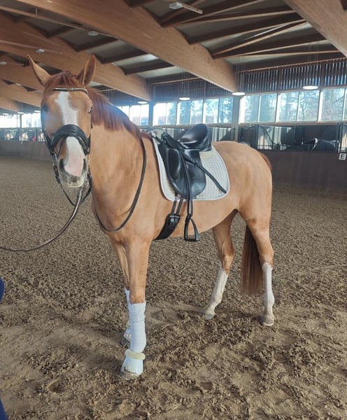 Elisa Rose ist eine vielversprechende 4-jährige Stute mit einem Stockmaß von 168 cm, gezogen von Erbe x Rosencharmeur. Sie überzeugt durch ihre sehr gute Rittigkeit, eine feine Anlehnung und ein angenehmes Reitgefühl, das sofort Vertrauen vermittelt. Elisa Rose befindet sich aktuell in professioneller Ausbildung und zeigt sich dabei stets lernbereit, ehrlich und leistungswillig. Durch ihre Leichtrittigkeit ist sie nicht nur für ambitionierte Reiter interessant, sondern eignet sich auch hervorragend als Umsteigerpferd. Auch beim Freispringen macht sie einen guten Job. Ein guter Röntgentüv liegt bereits vor. Eine wunderschöne Stute mit Perspektive für die weitere Ausbildung und den Sport. Videos können auf Anfrage gerne versendet werden.