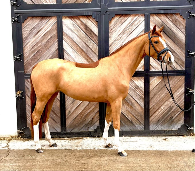 Elisa Rose is een veelbelovende 4-jarige merrie met een stokmaat van 168 cm, gefokt uit Erbe x Rosencharmeur. Ze overtuigt door haar uitstekende rijbaarheid, fijne aanleuning en een prettig rijgevoel dat meteen vertrouwen geeft. Elisa Rose bevindt zich momenteel in professionele opleiding en toont zich daarbij altijd leergierig, eerlijk en prestatiegericht. Door haar lichte gang is ze niet alleen interessant voor ambitieuze ruiters, maar ook uitstekend geschikt als overstappaard. Ook bij vrijspringen levert ze goed werk. Een goede röntgenkeuring is reeds beschikbaar. Een prachtige merrie met perspectief voor verdere opleiding en sport. Video's kunnen op verzoek graag worden toegestuurd.