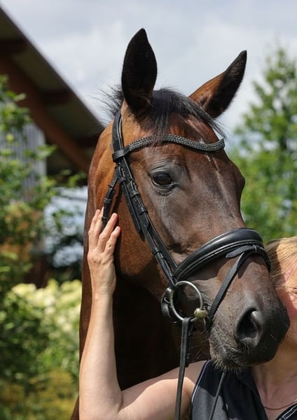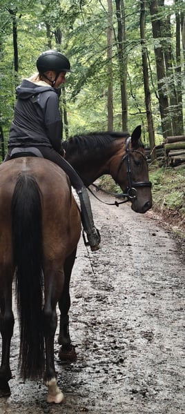 Zum Verkauf steht unsere kopfklare, harmonisch und korrekt gebaute Hannoveraner Stute (NICHT "stutig/ zickig" im Verhalten), geboren im Jahr 2021. Wunderbar sitzbequem, daher für Reiter mit Rückenproblemen geeignet! Mit ihrem eleganten, dunkelbraunen Fell und einem Stockmaß von 169 cm ist sie ein echter Blickfang. In der begonnenen Ausbildung zeigt sie ihre guten Grundgangarten. Diese talentierte Stute eignet sich hervorragend für den Dressursport und FReizeitreiten. Wir sehen sie als perfektes Damenreitpferd oder auch für Junioren mit regelmäßiger Trainerunterstützung (aufgrund ihres Alters und Ausbildungsstandes). Sie ist gesund, brav im Umgang, gut erzogen und hat einen freundlichen Charakter, der sie zu einer tollen Partnerin für ambitionierte Reiter macht. Direkt vom Züchter: Wir haben sie selbst gezogen, stellen gerne Fotos und Infos zu ihrem Leben zur Verfügung! Ihr 6jähriger Bruder steht ebenfalls zum Verkauf. Die Stute ist gesund, regelmäßig geimpft, entwurmt, dem Schmied und Zahnarzt vorgestellt. Wir suchen ein Zuhause mit guter Haltung (momentan nachts Box oder Laufstall, tags in großer Herde auf der Weide) und Jungpferdeerfahrung, um ihr sportliches Potenzial zu fördern und zu genießen! Die Abstammung verspricht viel Rittigkeit, dies zeigt sich bereits jetzt. Sie wurde 3jährig mit Ruhe eingeritten, was sehr problemlos war. In der nun unter dem Profi begonnenen Ausbildung zeigt sie ihre guten Grundgangarten und wartet auf mehr Arbeit und freundliche Ausbildung mit ihrem zukünftigen Reiter. Sie geht regelmäßig ins Gelände, sogar allein, auch mit Begleithund. 3-jährig an der Hand vorgestellt und als Zuchtstute ins HStB eingetragen. Gute Röntgenbilder. Instagram: loewelsberg Homepage: reitanlage-loewelsberg.de Pedigree: https://horsetelex.de/horses/pedigree/2268137/bohemia-royal Bei Interesse oder weiteren Fragen stehe ich gerne zur Verfügung. Vereinbaren Sie einen Termin zum Kennenlernen und überzeugen Sie sich selbst von diesem tollen Pferd!