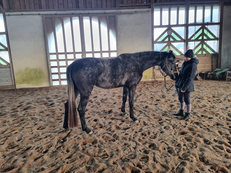 Verkaufe elegante Hannoveraner Stute – Rappschimmel, Geburtsjahr 2022 Zum Verkauf steht eine wunderschöne Hannoveraner Stute, geboren im Jahr 2022. Mit ihrem beeindruckenden Stockmaß von 169 cm vereint sie Größe und Anmut. Als Rappschimmel besticht sie durch ihr edles Erscheinungsbild und ihre charmante Ausstrahlung. Diese talentierte Dressurstute zeigt vielversprechende Grundgangarten und eine angenehme Lernbereitschaft. Sie eignet sich ideal für ambitionierte Reiter, die eine vielversprechende Nachwuchshoffnung oder eine zuverlässige Partnerin für den Dressursport suchen. Bei Interesse oder weiteren Informationen stehe ich gerne zur Verfügung. Kontaktieren Sie mich, um mehr über dieses besondere Pferd zu erfahren!