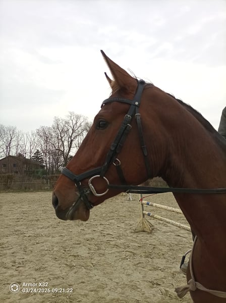 Confetti is now under saddle and demonstrates a clear head, willingness to work, and a calm demeanor. She is well-balanced and attentive under the rider, showing a patient and observant attitude.