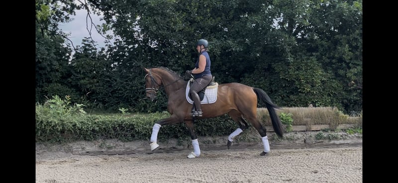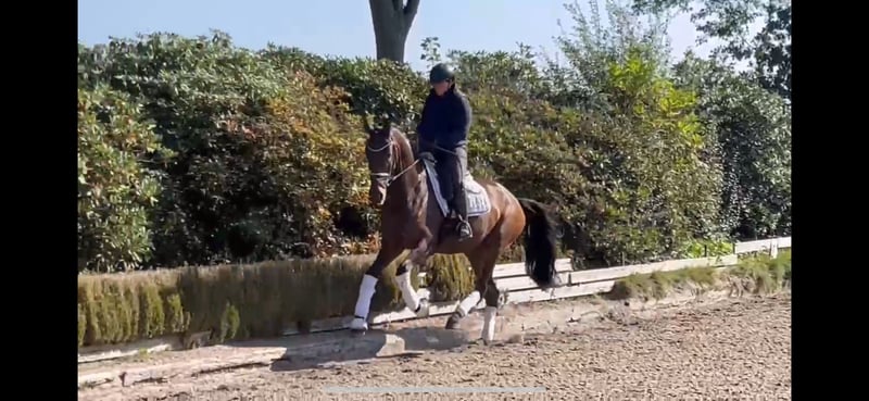 Sophie kommt direkt vom Züchter und befindet sich seid März bei uns in Ausbildung. Sie ist ideal für den Dressursport geeignet und überzeugt durch ihre Bewegungsqualität sowie ihre Lernbereitschaft. Sie ist unkompliziert im Umgang, so wie beim reiten. Hier befindet sie sich auf dem Weg in die Klasse L. Noch nicht öffentlich vorgestellt! Auch ist Sophie Interessant für die Zucht - aus dem Mutterstamm kommt z.B. der gekörte Hengst Don Henrico (PSG/ Inter I), Damien Dark (PSG/ Inter II) und Al Crusador. Ein Züchter-TÜV vom letzten Jahr liegt vor. Bei Interesse gerne Kontakt über WhatsApp oder Telefonisch 0178 7754715.