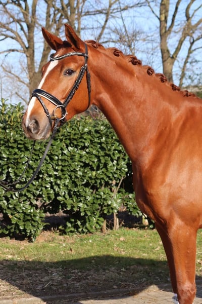 A strikingly typey and charming State Premium mare awarded the highest 1a premium, with a well-completed mare performance test and excellent movement in all three basic gaits. She grew up in her breeder's herd alongside her colleagues. She has been introduced to riding and has been appropriately promoted and trained for her age. Dyna Rose was already "a sweetheart of a foal" from the beginning! Today, she presents herself with very pleasant rideability and is very friendly in handling. Directly from the breeder.