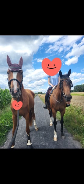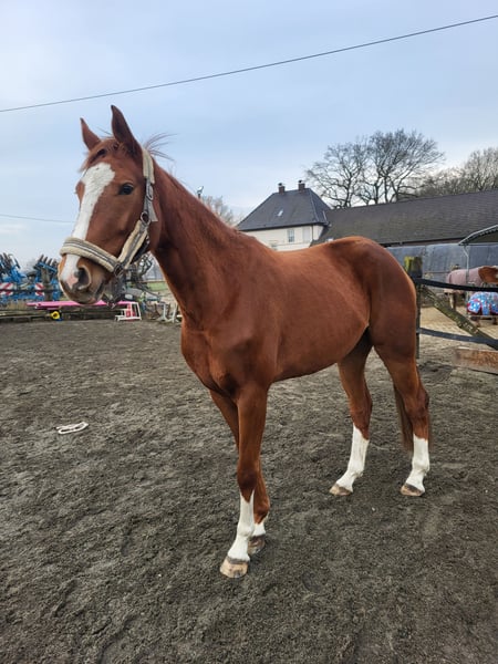 Ich muss mich leider aus zeitlichen Gründen von meiner geliebten Hannoveraner Stute im April 4 Jahre alt und aktuell ca 174cm große Bellatrixi trennen. Bellatrixi ist ein absolutes Traumpferd. Mit ihr kann man alles machen. Sie hat ein liebevolles und ruhiges Wesen. Mit ihr kann man problemlos alleine oder auch in der Gruppe spazieren gehen. Auch Bodenarbeit wie longieren mit Sattel und Trense kennt sie und macht sie super brav mit. Dabei hört sie auch auf die Stimme. Auch das laufen lassen ohne Longe macht sie hervorragend mit und läuft um einen herum. Außerdem kennt sie Trecker, Bullen, Hunde und was alles noch so im Straßenverkehr unterwegs ist, dabei ist sie immer lieb und unerschrocken. Bellatrixi überzeugt nicht nur durch ihre liebevolle und zuverlässige Art, auch ihre Gänge sind ein Traum. Sie schwebt gerade zu über den Boden. Durch ihre Abstammung ist sie auch für die Zucht sehr interessant. Benico ist ihr Vater, Quantensprung und Belissiomo sind ihre Großväter. Siehe Bilder. Bellatrixi ist geimpft und entwurmt. Im Mai wurden ihre Zähne gemacht und der Wolfszahn gezogen. Alle 6-7 Wochen ist sie vorstellig beim Hufschmied und dabei auch total brav. Aktuell hat sie Eisen vorne drauf, wegen einer leichten Fehlstellung zum korrigieren. Bald können die Eisen aber ab bleiben. Bei Fragen stehe ich Ihnen gerne zur Verfügung. Ich wünsche mir für Bellatrixi ein 5 Sterne zu Hause wo es ihr auch wirklich gut geht und sie genau wie bei mir mit Liebe behandelt wird.