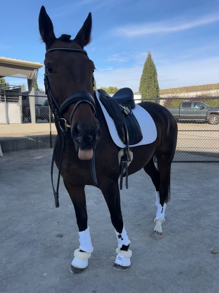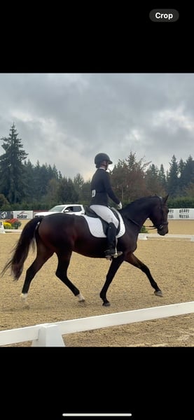 Meet wonderland AKA grace She is 5 on April 5th she is around 15”3 and would be a wonderful horse for the hunters she wtc and collects and extdends nicely she is 15th in Canada for training level and went to nationals this year and won reserve champ. Grace needs a very patient rider that is willing to give her time to grow she was started jumping X rails and the 2 foot she needs a lot of leg to get her moving asking 10k but that is negotiable Really grace is a wonderful horse for any kind of rider she is very safe and has never done me dirty! She has been a little hesitant to trailer but will go in Text 7809965115 for more information! She is located in Halbstadt MB but we are willing to travel. She is good on the ground not pushy picks up all four feet and stands great for the Ferrier