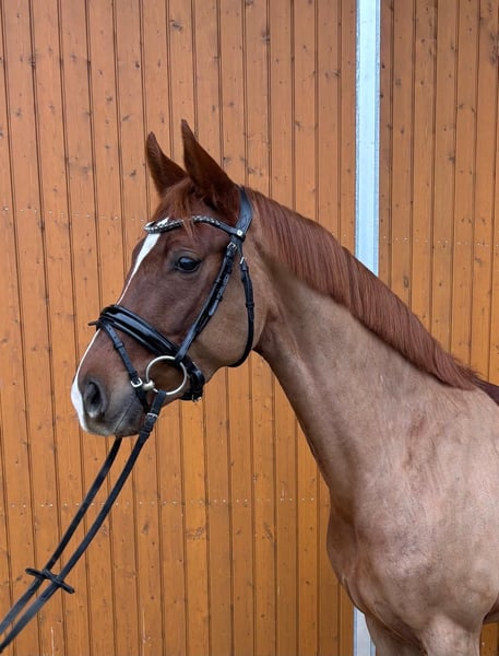 *Felicia* Diese wunderschöne Fuchsstute wurde im Jahr 2021 geboren und überzeugt durch ihr freundliches Wesen sowie ihre beeindruckende Erscheinung. Durch ihre raumgreifenden Grundgangarten und ihren motivierten Charakter bietet sie die perfekten Voraussetzungen für ambitionierte Reiterinnen und Reiter, die ihre Dressurkarriere vorantreiben möchten. Auch als Nachwuchspferd für Jugendliche wäre Felicia geeignet. Sie wird der Zuchtlinie entsprechend im Dressursport ausgebildet und zeigt bereits viel Talent. Bei einem Freilaufcup konnte sich Felicia den zweiten Platz sichern, bei ihrem ersten Turnier (Reitpferdeprüfung 2025) wurde sie dritte und somit platziert. Ihre angenehme Art macht sie zu einer zuverlässigen Partnerin im täglichen Training und bei Turnieren. Neben der Eignung als Sportpferd, ist Felicia zudem Interessant für die Zucht. Bei der Stutleistungsprüfung erlangte sie eine Gesamtnote von 8,22 und schenkte uns 2025 Jahr ein prämiertes Stutfohlen von Va Bene (siehe letzten beiden Fotos und Video). Die Stute ist gesund, regelmäßig geimpft und frei von Krankheiten. Sie ist gut im Umgang und lässt sich problemlos bei Tierarzt, Schmied und Zahnarzt vorstellen. Ein TÜV liegt aktuell nicht vor. Bei Interesse stehe ich gerne für weitere Informationen zur Verfügung. Ein Probereiten ist nach Vereinbarung möglich. Gerne per WhatsApp unter +4915560581906.
