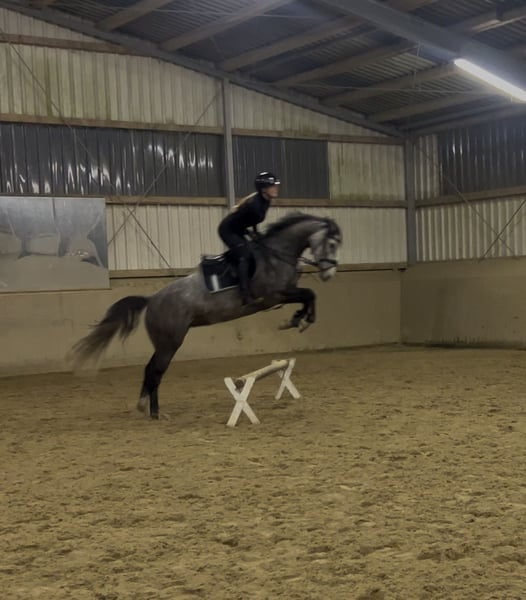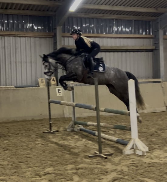 Beautiful Hanoverian mare – ideal for show jumpers! This elegant grey mare was foaled in 2021 and impresses with her friendly temperament as well as her excellent jumping ability. Standing at 16.2 hh, she offers the perfect size for ambitious riders seeking a reliable and talented horse for advanced show jumping. She already demonstrates considerable talent, caution, and an extraordinary scope in jumping, showing promising development. The mare is healthy, well-cared for, and versatile for both training and future competition. If interested and for further information, please feel free to contact me. A personal meeting is always possible! Please only inquire via WhatsApp +49 176 2776762