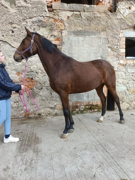 Des photos et vidéos suivront. Cette magnifique jument, dotée d’un remarquable galop, recherche une nouvelle famille qui saura la soutenir. Elle possède un caractère sincère et aborde le travail avec l’humain avec une attitude positive. Elle est prudente mais apprend rapidement. Elle connaît déjà les tâches quotidiennes et commence doucement sa transition vers la vie de cheval de sport. En bonne santé, sans mauvaises habitudes ni limitations. Au moment de la publication, son prix en l’état brut débute à 5 000 €, et il peut atteindre jusqu’à 10 000 € après une formation complémentaire. Le prix actuel doit être confirmé ou une offre peut être faite pour cette perle rare. Elle est également une rareté génétique. Son père, Blue Horse Monte Carlo, n’est plus utilisé pour la reproduction depuis 2024, ayant été castré malgré une forte demande et une excellente descendance, afin de se consacrer entièrement à sa carrière sportive. Mise à jour : elle marche au pas et au trot en longe sous la selle. AKU et transport possibles sur négociation. TÜV réalisable à ses frais. Numéro de trace disponible, permettant une vente internationale.