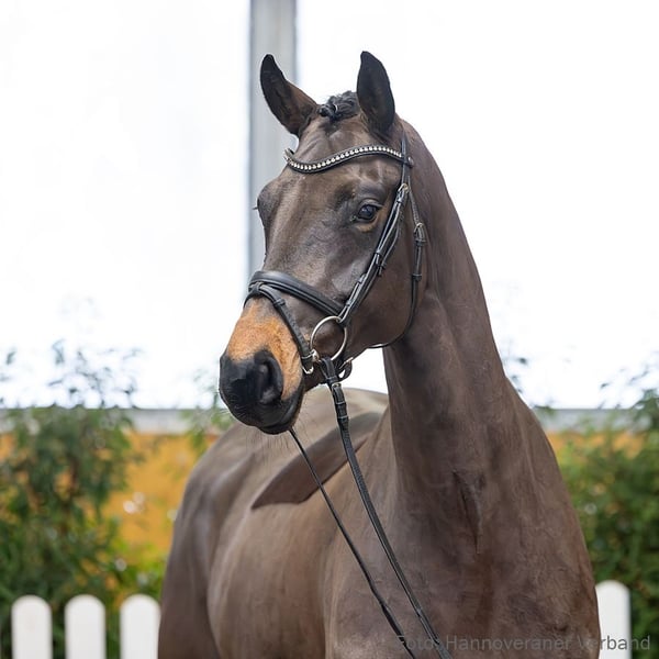 Das Pferd ist ein Verdener Auktionspferd und wird am 18.04.2026 onlive versteigert. Vom 6.04. bis zum 18.04. kann das Pferd jeden Tag beim öffentlichen Training besichtigt und ausprobiert werden. Das Startgebot bei der Versteigerung ist 8.000 Euro. Dhanouk ist ein Pferd für die kommende Saison – ein Springaspirant mit idealer Einstellung für den Sport. Ihre Halbschwester Grey Sloane gehörte zu den begehrtesten Springpferden der Auktion im Januar 2026, und ihre Vollschwester Donneli ist mit Margit Kippenhan erfolgreich in Springpferdeprüfungen der Klassen A und L. Der Stutenstamm wird sportlich angeführt durch Julius Caesar 10 v. Jupiter II (S mit Stephan Lerche), Sidney v. Seebote (M mit Silke Singer) und Dampati v. Don Alfredo (international 1,40 m mit Stephanie Zahn). 1. Generation Aufbauprüfungen Springen: HannPrA Donneli v. Diacontinus (SPR: L). Auktionspferde: Vet+ Grey Sloane v. Grey Top (VA 2026). 2. Generation Sportpferde Dressur: Sangthàl/Sangthal v. Samba Hit I (DRE: M** mit Louisa Wedermann). Sportpferde Springen: Dampati v. Don Alfredo (SPR: int. 1,40 m mit Stephanie Zahn); Calla/Calla 51 v. Con Chello (SPR: 1,40 m mit Jenny Wessel); Chagall 260 v. Converter (SPR: 1,35 m mit Christian Hess); La Gioia v. Liberty M (SPR: 1,35 m mit Sophia Roffeis); Virginia 216 v. Valentino (SPR: 1,30 m mit Rene Dittmer); Charly 1586 v. Clinton II (SPR: 1,30 m mit Alexander Auer); PrSp VbPr Santana/Santana 546 v. Santander H (SPR: 1,30 m mit Christina Sauter). Aufbauprüfungen Springen: Carlos Silver v. Comte (SPR: L); StPr Upayá/Upaya v. Uckermärker (SPR: L). Auktionspferde: Aconito v. Action Blue (VA 2024); CSI Miami v. Chacoon Blue (VA 2023); Chakaria v. Chacoon Blue (VA 2022). 3. Generation Sportpferde Dressur: Dolittle 1 v. Lenz (DRE: S** mit Krekel,Anja). Sportpferde Springen: Livius 66 v. Lenz (SPR: M mit Mueller,Walter); Argonaut 32 v. Adamit II (SPR: M mit Kluesener,Oliver). 4. Generation Sportpferde Dressur: FINK 17 v. Feingold (DRE: M mit Huentrup,Bernhard 3010,SPR: L). 5. Generation Sportpferde Dressur: Jenisej 2 v. Jirko (DRE: M mit Rittner,Wiebke). Sportpferde Springen: Julius Caesar 10/Julius Caesar 10 v. Jupiter II (SPR: S mit Lerche,Stephan); Sidney 60/Sidney 60 v. Seebote (SPR: M mit Silke Singer); Jupiters Deern v. Jupiter II (SPR: M mit Freistedt,Norbert); Feuerwirbel/Flip-Flop v. Feuerwerk (SPR: M mit Fried,Günter); Julchen 11066/Jule 13 v. Jirko (SPR: M mit Knoch,Christoph); Diskus 74 v. Durchgang (SPR: M mit Quitschau,Gerhard). Aufbauprüfungen Springen: Feuerlady (1.Zweitschrift)/Feuerlady 7 v. Feuerwerk (SPR: M mit Sulmoni,Clint); Alltrak 1/ALLTRACK v. Adamit II (SPR: L). Mutter: Lykia ZL: 8/8 ZSP: Feldprüfung Reitpferd - Trab 6,50 Galopp 6,50 Schritt 7,00 / Durchschnitt Rittigkeit 7,00 / Durchschnitt Springen 8,00 Turniererfolge: SPR: L 2/2. 1/3. 1/4. SPR: A 4/2. 1/4. SPF: A 1/4. 1/w. Großmutter: Jiris 24699 ZL: 16/14