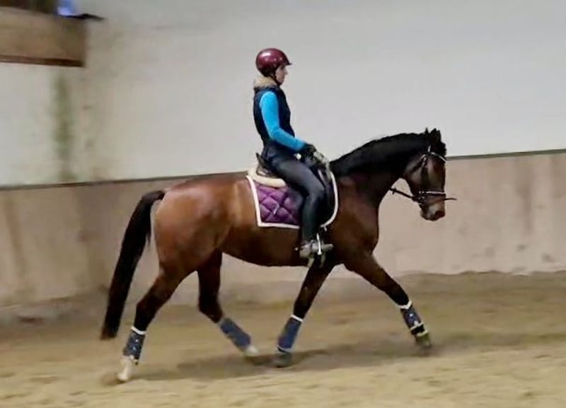 Im Auftrag des Züchters wird hier eine superliebe und sehr hübsche braune Stute mit top Abstammung (Fusionist x Lauries Crusador) angeboten. Sie ist mit derzeit 1,65 m ein ideales Damen- oder Umsteigerpferd. Aufgrund von Bestandsverkleinerung sehr günstig abzugeben. Die Stute ist gut angeritten. Sie ist brav unter dem Sattel, dennoch aufgrund ihres Ausbildungsstandes kein Anfänger- oder Kinderpferd. Sie hat einen guten Röntgen Tüv. Hauptsächlich ist sie aufgrund ihrer Abstammung für die Dressur geeignet, sie stellt sich aber auch beim Freispringen sehr geschickt an. Für die Zucht wäre sie ebenfalls sehr gut geeignet, da sie eine sehr interessante Abstammung hat (Vater Fusionist: Franklin- Ehrentanz- Florestan). Aus ihrer Mutter stammt auch eine Stute, die 2022 Preisspitze auf der Verdener Auktion wurde! Schnell sein lohnt sich...eine tolle Stute mit vielen Möglichkeiten zum kleineren Preis!!! VHB 13.500 Euro