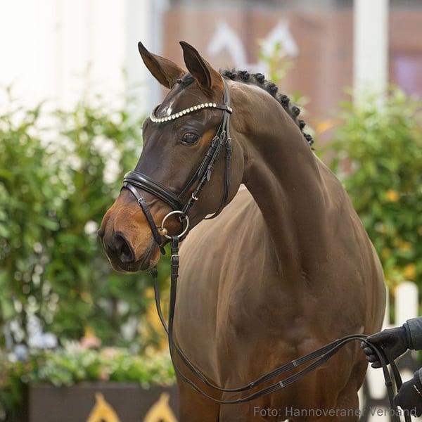 Feodora wurde mit der Gesundheitsprämie Vet+ ausgezeichnet. Sie ist ein sympathischer Nachwuchs für den ambitionierten Dressur- und Freizeitreiter und überzeugt mit Charme sowie liebenswertem Interieur. Ihr Halbbruder wechselte 2022 über die Verdener Auktion in neue Hände und feiert mittlerweile mit seiner Reiterin Mia Matilda Granlien Erfolge bis M*. Der weitere Stutenstamm wird unter anderem durch Wiona v. White Star (DRE: international S* mit Claudia Brambilla) repräsentiert. Prämie: Vet+ 1. Generation Sportpferde Dressur: Flirty Boy v. Floris Prince (DRE: M* mit Mia Matilda Granlien,VA 2022). Auktionspferde: Find me in the dark v. Floris Prince (VA 2022). 2. Generation Sportpferde Dressur: StPrA Wiona/Wiona 29 v. White Star (DRE: int. S* mit Claudia Brambilla,Nationenpreis Dressur Kl.S Junge Reiter -international- 2012,VA 2004,Louis Wiegels-Schau Uelzen 2003); Legendary Loon v. Lissaro (DRE: M* mit Laura Müller-Wendels); Fille du Soleil v. Falsterbo (DRE: M* mit Laura Wendels). Aufbauprüfungen Dressur: Like Fire 3 v. Londontime (DRE: L). Auktionspferde: Fabelhaft v. Floris Prince (VA 2022); Hollister v. Heinrich Heine (VA 2021); Fabienne v. Finnigan (VA 2022). Bes. Prämientöchter: StPrA White Light v. White Star. 3. Generation Sportpferde Dressur: La Luna 344 v. Londontime (DRE: M** mit Raphael Loison); Wailando 8 v. White Star (DRE: M** mit Nicola Osmers); Stella/Stella 771 v. Souvenir (DRE: M* mit Sina-Christin Joesten,VA 2008). Aufbauprüfungen Dressur: West Virginia/West Virginia 28 v. Wonderful (DRE: L). Auktionspferde: Fontana 67 v. Floris Prince (VA 2022); StPrA Shocolata/Sally v. San Remo (FoVA 2007); Stallone v. Souvenir (FoVA 2006: 27.000 €); Delight v. Don Frederico (VA 2007); Goodlife 2 v. Grand Cru (VA 2001); Wailando 3 v. Wonderful (VA 2001). Bes. Prämientöchter: StPr Alina v. Archipel. 4. Generation Sportpferde Dressur: Jeandet v. Jazz (DRE: S** mit Jennifer Nagel); Soiree 5 v. Souvenir (DRE: M* mit Anna Purwin). Sportpferde Springen: Morocco v. For Edition (SPR: 1,55 m mit Mouda Zeyada,Grand Prix Two Rounds 2020); Finchen/Fine Finchen v. For Edition (SPR: 1,35 m mit Lars Geschinsky); Grisham 3 v. Grand Cru (SPR: 1,35 m mit Matthias Schäffer); Lewonka v. Levisto (SPR: 1,30 m mit Albrecht Härtling); Cashews v. Convoi (SPR: 1,30 m mit Anja Dezlhofer); Wum 110 v. Wandervogel (SPR: M mit Helmut Westkamp); Wenke/Wenke 104 v. Wanderer (SPR: M mit Dobrick,Julia Christin). Aufbauprüfungen Dressur: Hidalgo 98 v. Hohenstein (DRE: L); El Chico 44 v. Eklatant (DRE: L,HM 1990). Aufbauprüfungen Springen: Queridoo FRH v. Quantensprung (SPR: L,Gelände: L); Fine Frenzi S v. For Edition (SPR: L); Weaver 2 v. Wandervogel (SPR: L). Aufbauprüfungen Gelände: Queridoo FRH v. Quantensprung (SPR: L,Gelände: L). Auktionspferde: Bellini v. Bonds (FoVA 2024); v. Damaschino - San v. Damaschino I (VA 2023); Herzblatt v. Heinrich Heine (VA 2021); Walencio v. Weltruhm (VA 2020); StPr Darling v. De Niro (FoVA 2008); Shiraz v. Sir Donnerhall I (VA 2010); Hokuspokus v. Hohenstein (VA 2006); Chili Pepper v. Convoi (VA 2002); Landliebe B v. Landclassic (VA 2002); Waiano v. White Magic (VA 2000); Liberto 3 v. Lanthan (VA 1992). Bes. Prämientöchter: HannPrA Dorle La Douce v. De Niro; StPr Dainty Bess v. De Niro; StPrA Donna Larina/Donna Larina 4 v. Don Larino; StPr Whiteney v. White Magic; StPr Marusha/Marusha 21 v. Mont du Cantal; StPr Eskapade v. Eklatant; StPr Agrepina/Agrepina 2 v. Akzent I (Louis Wiegels-Schau Heiligenfelde 1989). 5. Generation Sportpferde Dressur: Schlossherr 5 v. Sterntaenzer (DRE: Grand Prix mit Sarah Erlbeck,Dressurprüfung Kl. S*** - Grand Prix de Dressage 2012,Deutsche Meisterschaft Junge Reiter Dressur 2011,Deutsche Meisterschaft Junge Reiter Dressur 2010,Championat für Reitpferde o.M. 2003); v. Fürst Romancier (DRE: S*** mit Amanda LOPEZ); Sir Lommel 2 v. Sir Donnerhall I (DRE: S** mit Marie-Therese Gaar); Fleurance 8 v. Fürst Romancier (DRE: S* mit Magnus Granlien); Joop R v. Jazz Time (DRE: S* mit Karen Anett Lempert); Simply a white splash v. Sunny-Boy (DRE: S* mit Tahani Ibrahim); Wolatinero v. Western Star (DRE: S mit Pratschke,Meike-Kristine); GERMANICUS 3 v. Garibaldi (DRE: S mit HELD,MARION,VA 1981); Don Karuso R v. Don Primero (DRE: M mit Frank,Iris); Tennesee/Tennesee 2 v. Texas (DRE: M mit Benz,Maren); Willbert v. Wilhelm Tell I (DRE: M mit Meyer,Gabriele). Sportpferde Springen: Wilhelm Tell 9 v. Wilhelm Tell I (SPR: S mit STOLTE,WOLFGANG); Shiva 123 v. Stenograph (SPR: 1,30 m mit Jennika Stürken); Candlelight/Candlelight 11 v. Champ of Class (SPR: 1,30 m mit Rainer Freese); Loriot 168 v. Lanthan (SPR: M mit Kratz,Thomas); Biaritz v. Raphael (SPR: M mit Raith,Konrad); BLACK JACK 4 v. Absatz (SPR: M mit KONERTZ,ANGELA). Sportpferde Fahren: WUNSCHTRAUM 41 v. Wedekind (Fahren: S mit MERK,HEINER); WALZERTRAUM 35 v. Wedekind (Fahren: S). Aufbauprüfungen Dressur: gek. Hengst Sir Lommel v. Sir Donnerhall I (DRE: M mit Martin Swoboda,Neustadt/Dosse 2009); Divina/Divina 59 v. Don Primero (DRE: L); Atlanta 340 v. Alabaster (DRE: L,SPR: L); Tansania/Tansania 3 v. Texas (DRE: L); Willerbee v. Wagner (DRE: L). Aufbauprüfungen Springen: StPr Cascada/Cascada 87 v. Cayton (SPR: 1,30 m mit Boris Miksa); Abacano/Abacano 3 v. Abakarde (SPR: L); Amateur 85 v. Arc de Triomphe (SPR: L); Frantixx v. For Edition (SPR: L); Galanthus 4 v. Glorieux (SPR: L); Queen of Quebec v. Quebec (SPR: L); Atlanta 340 v. Alabaster (DRE: L,SPR: L); Attletika v. Athletico (SPR: L); Astor-Rex v. Athletico (SPR: L); Werina/Werina 1 v. Wedekind (SPR: L). gekörte Hengste: gek. Hengst Rodin v. Ratibor (USA 2001); gek. Hengst Ironman/Ironman 4 v. Ilasso (Viernheim 1996); gek. Hengst Waldkoenig v. Wenzel I (Verden 1987,HM 1985); gek. Hengst Graz v. Garibaldi (Verden 1982,HM 1982); gek. Hengst Abflug v. Absatz (Verden 1974). Auktionspferde: Witosch 6 v. Wellington (FoVA 1982). Bes. Prämientöchter: StPr Madonna v. Matcho; StPr Gina/Gina 143 v. Goldfinger; StPr Padua v. Pik König; St