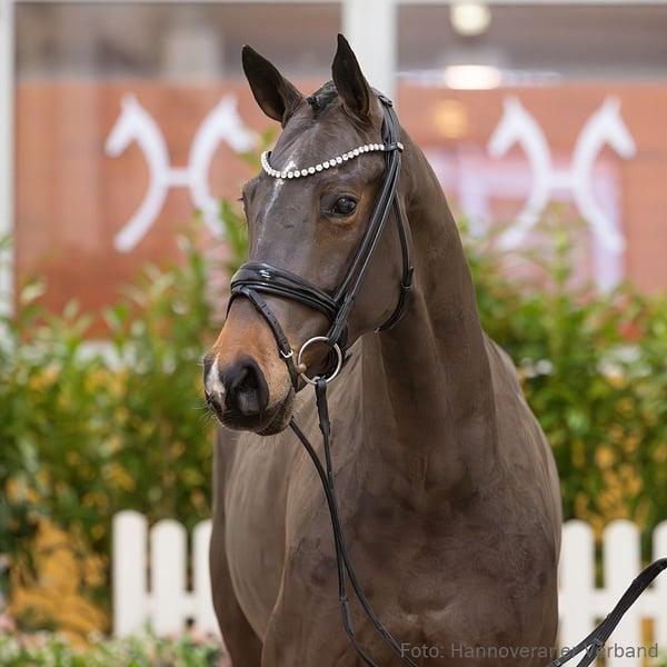 Fenice H überzeugt durch ihr formschönes, kompaktes Seitenbild und beste Dressurveranlagung. Sie bringt gute reiterliche Vorbildung mit und präsentiert sich als vielversprechende Nachwuchsstute. Ihre Halbgeschwister konnten sich bereits im Sport etablieren, darunter Ligurio v. Londontime (mit Christiane Peters) und Born to Shine v. Bon Coeur (mit Ulrike Hatzl), die beide in S-Dressuren erfolgreich sind. 1. Generation Sportpferde Dressur: Ligurio v. Londontime (DRE: S* mit Christiane Peters); Born to shine v. Bon Coeur (DRE: S mit Ulrike Hatzl). Aufbauprüfungen Dressur: Be Mine 9 v. Bon Coeur (DRE: L); Lamourano v. Londontime (DRE: L,FoVA 2012). 3. Generation Aufbauprüfungen Springen: StPr Shakira/Shakira H v. Schwarzenegger (SPR: L,VA 2005). Auktionspferde: Con Brio H v. Cornado I (FoVA 2020); Bon Salino v. Bon Coeur (VA 2022); Despacita/Despacita 5 v. Don Frederic (VA 2017); Saverio v. Schwarzenegger (VA 2010). 4. Generation Sportpferde Springen: Alfa Romeo 8 v. Atatürk (SPR: 1,40 m mit Schmerglatt,Rainer). 5. Generation Sportpferde Dressur: Famous Boy 4 v. Florestan I (DRE: M* mit Thomas Ranft). gekörte Hengste: gek. Hengst Showdown/v. Sandro Hit v. Sandro Hit (Verden 2004,HM 2004: 220.000 €,Prä.weiter Körung Verden 2004). Auktionspferde: Showtime v. Sandro Hit (VA 2009); Rionegro v. Royal Diamond (VA 2003). Bes. Prämientöchter: StPr Summer/Summer 31 v. Sandro Hit. Mutter: Santa Venezia ZL: 13/9 Großmutter: Sherrylin ZL: 4/1 ZSP: Feldprüfung Reitpferd - Trab 7,50 Galopp 7,50 Schritt 7,50 / Durchschnitt Rittigkeit 7,75 / Durchschnitt Springen 8,00 Turniererfolge: SPR: L 1/w. SPR: A 1/2. 3/3. 1/4. 1/5. 9/w. DRE: A 2/w. SPR: E 1/4. 1/w. DRE: E 1/3. 1/5. Das Pferd ist ein Verdener Auktionspferd und wird am 25.01.2026 online versteigert. Vom 12.01. bis zum 25.01. kann das Pferd jeden Tag beim öffentlichen Training besichtigt und ausprobiert werden. Das Startgebot bei der Versteigerung ist 8.000 Euro.