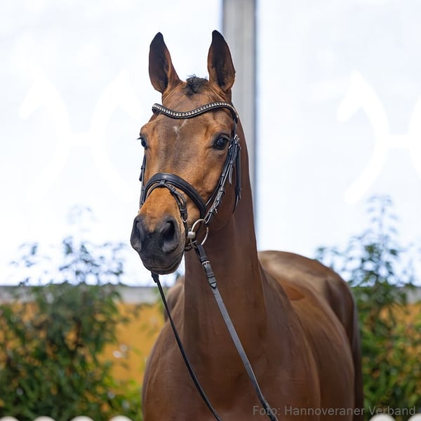 Das Pferd ist ein Verdener Auktionspferd und wird am 18.04.2026 onlive versteigert. Vom 6.04. bis zum 18.04. kann das Pferd jeden Tag beim öffentlichen Training besichtigt und ausprobiert werden. Das Startgebot bei der Versteigerung ist 8.000 Euro. In Dina setzen wir große Erwartungen. Große Aufmerksamkeit bei passender Galoppade zeichnen diese noch unerfahrene Nachwuchshoffnung aus. 2025 hatte sie ein Stutfohlen von Captain Pezi. Ihre Mutter Goldica ist mit Nils Cedrik Stephan erfolgreich in M-Springen. Den erfolgreichen Mutterstamm führen Goldperle v. Grey Top (SPR: 1,30 m mit Peter Korn-Finke, Herwart von der Decken-Schau Verden 2015), StPr Grandezza v. Granulit (SPR: M mit Ralf Blanke) und Lupine v. Lupicor (SPR: international 1,45 m mit Jens Baackmann) an. Das Pferd wird abweichend von den Auktionsbedingungen ohne Versicherungsschutz verkauft. Bitte erkundigen Sie sich bei der Auktionstierärztin. Zuchtname: Dina 2. Generation Sportpferde Springen: Goldica/Grace Lou v. Grey Top (SPR: 1,30 m mit Nils Cedrik Stephan,VA 2022). 3. Generation Sportpferde Dressur: Royalito v. Royal Blend (DRE: Grand Prix mit Paul Schmid,GP - Grand Prix 2022,Dressurprüfung Kl. S*** - Grand Prix de Dressage 2019,Dressurprüfung Kl. S*** - Grand Prix de Dressage 2019,Dressurprüfung Kl. S*** - Grand Prix Special - 2019,Dressurprüfung Kl. S*** - Grand Prix Kür - 2019,Dressurprüfung Kl. S*** - Grand Prix de Dressage 2019,Dressurprüfung Kl. S*** - Grand Prix de Dressage 2018,Dressurprüfung Kl. S*** - Grand Prix de Dressage 2018,Dressurprüfung Kl. S*** - Grand Prix Special - 2018,Dressurprüfung Kl. S*** - Grand Prix de Dressage 2018,Dressurprüfung Kl. S*** - Grand Prix de Dressage 2018,Dressurprüfung Kl. S*** - Grand Prix Special - 2018,Dressurprüfung Kl. S*** - Grand Prix de Dressage 2018,Dressurprüfung Kl. S*** - Grand Prix de Dressage 2018,Dressurprüfung Kl. S*** - Grand Prix de Dressage 2018,Dressurprüfung Kl. S*** - Grand Prix de Dressage 2017,Dressurprüfung Kl. S*** - Grand Prix de Dressage 2017,Dressurprüfung Kl. S*** - Grand Prix Special - 2017,Dressurprüfung Kl. S*** - Grand Prix de Dressage 2017,Dressurprüfung Kl.S*** mit Piaffe und Passage 2017,Dressurprüfung Kl. S*** - Grand Prix de Dressage 2017,Dressurprüfung Kl. S*** - Grand Prix de Dressage 2016,Dressurpferdeprfg. Kl.L Bundeschampionat 5 jährige 2011); Superio 3 v. Soliman de Hus (DRE: S* mit Jeannette Ott); His little Son v. His Highness (DRE: S* mit Taja Kiesewetter); Dance for us 5 v. Dancier (DRE: M* mit Lara-Sophie Watermann); Sneakers v. Sir Savoy (DRE: M* mit Julia Sönksen); Wordgy v. Worldly (DRE: M* mit Birte Hey). Sportpferde Springen: HannPrA Goldperle/Goldperle 42 v. Grey Top (SPR: 1,30 m mit Peter Korn-Finke,Herwart von der Decken-Schau Verden 2015); StPr Grandezza/Grandezza 190 v. Granulit (SPR: M mit Ralf Blanke). Aufbauprüfungen Dressur: Feliz Navidad/Feliz Navidad 10 v. Feuertanz (DRE: L); Fio HM v. For Romance I (DRE: L,VA 2022: 65.000 €). gekörte Hengste: gek. Hengst Fulltime Lover v. Flashbang (MS-Handorf 2024). Auktionspferde: Cosma Calida v. Cape Calidus (FoVA 2024); HannPrA Vet+ Solowej v. Sandro Hit (VA 2025); Dacari/Der kleine Lord v. Don Nobless (FoVA 2018); Lawinia/Lauries Lawinia v. Lauries Crusador (FoVA 2010); Lady Laura/Lady Laura 9 v. Lauries Crusador (FoVA 2009); Double-O-Seven 3 v. Don Marcello (VA 2012); Harvey v. Herzensdieb (VA 2011); StPr Diva's Welt v. Don Frederico (FoVA 2007,VA 2011); Sarina Athena/Sarina v. Stalypso (FoVA 2007); Goliath v. Granulit (FoVA 2003). Bes. Prämientöchter: HannPrA Finetta/Finetta 40 v. Fürstenball (Herwart von der Decken-Schau Verden 2017); HannPr Quelina/Quelina H v. Quaterhall; HannPr Stella/Stella Hey v. Soliman de Hus; StPr Charita v. Carlucci (Herwart von der Decken-Schau Verden 2012); StPr Schmuckstück/Schmuckstück 5 v. Samarant; StPr Wallerina v. Worldly; StPr Palina/Palina 12 v. Pablo. 4. Generation Sportpferde Dressur: Ratandro v. Rejoice (DRE: M** mit Sandra Polanetzki); Willeby v. Werther (DRE: M mit Kölle,Gabriela). Sportpferde Springen: Lupine 39 v. Lupicor (SPR: int. 1,45 m mit Jens Baackmann); Palou De Ligny v. Palouchin de Ligny (SPR: int. 1,30 m mit Kaisa Aino Moos); Redskin Z v. Rebel Z (SPR: 1,50 m mit Röschenkemper,Elke); Lordane 3 v. Lordanos (SPR: 1,40 m mit Patrik-Viktor Schröder); gek. Hengst Payback/Payback 6 v. Pocalino (SPR: 1,35 m mit Ariana Ravanbakhsh,Vechta 2006); Coraleen v. Corratus (SPR: 1,30 m mit Jenny Jönsson,Gelände: L); Grace Granulit v. Granulit (SPR: 1,30 m mit Steffi Willmann). Aufbauprüfungen Springen: Carita 6 v. Casino Berlin (SPR: 1,30 m mit Jannes Schultewolter); Conni 23 v. Casalido (SPR: L); Sonja 463 v. Sandro Boy (SPR: L); Little Prince 7 v. Little Love (SPR: L). Auktionspferde: Sandra/Sara Bella v. Sandro (FoVA 1994); Charita/Charita 4 v. Calypso II (VA 1996). Bes. Prämientöchter: StPr Wiebke v. Werther; StPr Werra/WERRA 46 v. Werther. 5. Generation Sportpferde Dressur: GENIUS 25 v. Graphit (DRE: S mit HAUSMANN,MANUELA,SPR: S mit KISKER,RICHARD). Sportpferde Springen: Sigis Flip v. Salito (SPR: 1,40 m mit Jan Hoffmann); Calido 8 v. Calypso II (SPR: S mit Neuburg,Bernhard); Pia/Parea 2 v. Picard (SPR: S mit Blanke,Ralf); GENIUS 25 v. Graphit (DRE: S mit HAUSMANN,MANUELA,SPR: S mit KISKER,RICHARD); Corea 5 v. Comte (SPR: 1,30 m mit Sarah Lina Brakel); Leroy Brown 10 v. Landsdown (SPR: M mit Blanke,Ralf); Grafenstein 1 v. Graphit (SPR: M mit TRIPPE,HUBERTA); GALAN 64 v. Graphit (SPR: M mit BARTELS,CHRISTOPHER); GISCARD 4 v. Graphit (SPR: M mit FUNKEN,HORST). Aufbauprüfungen Springen: Grille/GRILLE 27 v. Graphit (SPR: L). Mutter: Goldica ZL: 1/1 Turniererfolge: SPR: M 2/w. SPF: L 1/1. 1/3. 1/5. 1/w. SPR: A 1/1. 1/4. 1/w. SPF: A 2/5. 2/w. Großmutter: Charita Prämierung: 1xIa. ZL: 3/2 ZSP: Feldprüfung Reitpferd - Trab 7,50 Galopp 8,00 Schritt 7,50 / Durchschnitt Rittigkeit 7,00 / Durchschnitt Springen 8,00