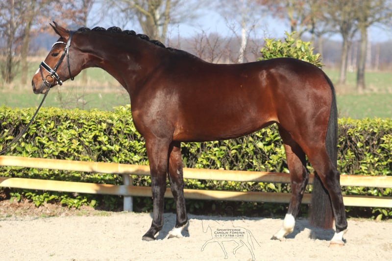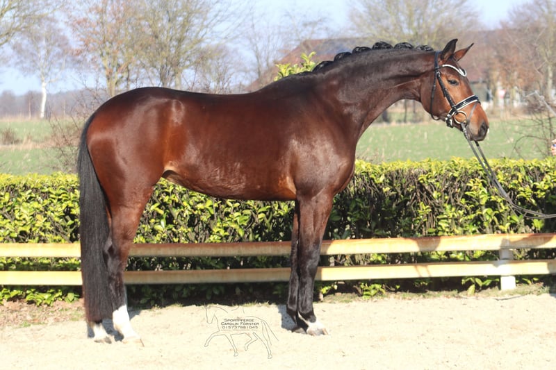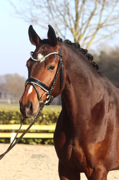 Flora-Rose ist eine Bewegungsstarke Tochter des Top Vererbers Foundation aus einer San Amour Mutter. Sie überzeugt mit drei sehr guten Grundgangarten und zeigt viel Talent für Piaffe und Passage. Sie ist noch nicht altersentsprechend gefördert, daher wünschen wir uns für sie einen einfühlsamen und erfahrenen Reiter. Guter Züchtertüv vorhanden Bitte ausschließlich telefonische Anfragen unter 015737881045