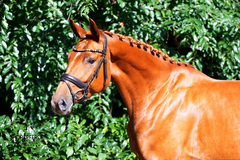 Hannoveraner | Stute | *2021 | ca. 1,68 m ⚜️ Scolari – Waterford – Brentano II ⚜️ ❤️ Traum-Fuchsstute mit allen Möglichkeiten ❤️ Diese bildschöne, langbeinige und typvolle Tochter des Scolari überzeugt mit enormer Ausstrahlung, drei guten Grundgangarten und einem erstklassigen Charakter. 👉 Schonend angeritten zu Beginn ihres 3. Lebensjahres, zeigt sie sich seitdem durchweg vorbildlich und immer lernbereit. 👉 Bereits in Reitpferde- und Dressurpferde A-Prüfungen platziert – eine sehr solide Basis für die weitere sportliche Förderung. 👉 Dank ihres ehrlichen, ausgeglichenen Wesens ist sie nicht nur für ambitionierte Dressurreiter interessant, sondern auch für schwächere oder ängstlichere Reiter eine verlässliche Partnerin. 👉 Verladen und Geländereiten bereiten keinerlei Probleme, sie kennt den täglichen Weidegang im Herdenverband und ist insgesamt absolut unkompliziert im Handling. Die Stute wurde vom jetzigen Besitzer 3-jährig erworben und seither professionell gefördert. Ein aktueller, umfangreicher TÜV inkl. Rücken und Hals liegt vor. 📍 Standort: Spelle 📞 Nähere Informationen gerne unter: +49 173 3013499