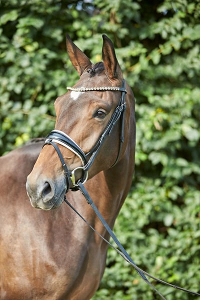 Typy, large-framed, athletic, and lovable mare with a great character and temperament. Her nerve strength and rideability have also been proven at competitions. Frida is at a secure level of Dressage Horse A and has already placed in her second test of Drpf. Kl. A. She is being trained according to the training scale. Whether you are looking for a future competition partner or a loyal leisure horse – this mare will impress you! For inquiries or more information, please contact me. Viewings and test rides are possible at any time by appointment. Tel. 0170 743 2503. Directly from the breeder.