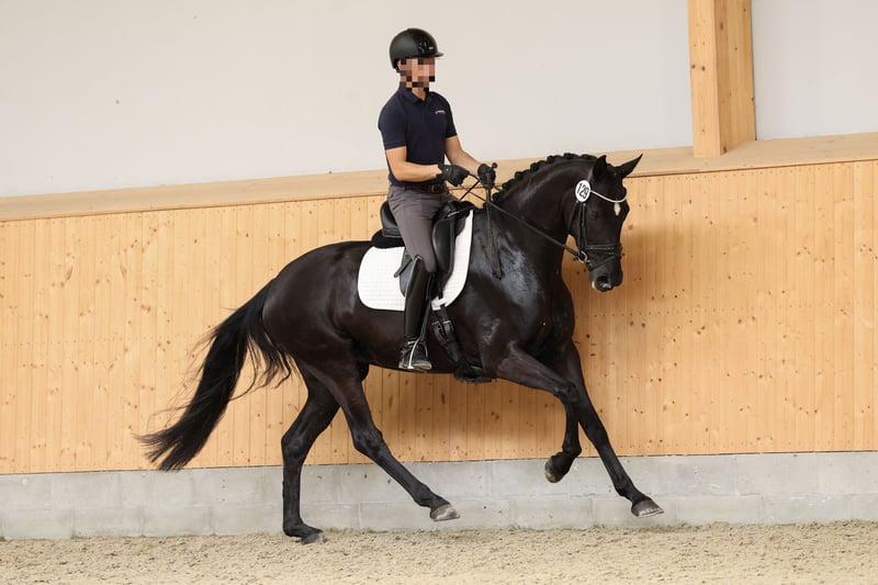 - Very light in the mouth, sensitive and alert, she eagerly seeks to learn and moves forward willingly! - Fine dressage prospect with three good basic gaits and clear X-rays with no findings! - Her brother won Inter II last half-year, debuted in the Grand Prix, and won it multiple times, including international GPS and Kür! - Raised to be robust and healthy, backed late and gently started under saddle, now looking for her "perfect match." - She is very sweet in handling and also enjoys going out on rides. - At the long rein, she prefers to amble along and curiously observes her surroundings. She is familiar with farm machinery, small animals, larger dogs, 🐕 children with go-karts and bicycles. - Her purchase price increases with her level of training! Directly from a responsible, quality breeder!