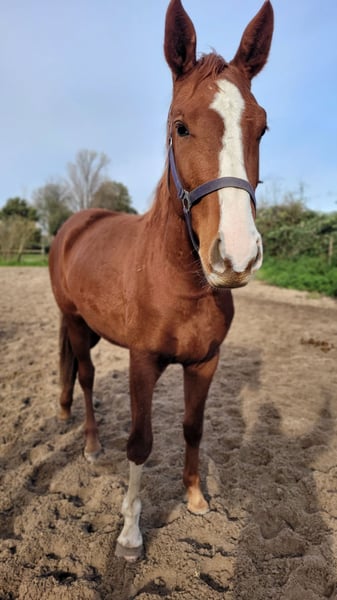 Fuchsstute Damaschina von dem Prämienhengst und Bundeschampion Damaschino aus der Donnergirl.von DonquestadorxJaquarexRubinstein Geb. 11.05.2021. Vorauss. Stm. 172. Damaschina ist angeritten .Da sie jedoch danach wieder auf die Weide gestelt wurde, muß sie wieder antrainiert werden. Sie wird daher zum Preis eines rohen Pferdes angeboten.Sie verfügt über einen korrekten Körperbau und überdurchschnittliche Grundgangarten. Hervorzuheben ist ihr sehr guter raumgreifender Schritt, den sie von ihrem Vater Damaschino von Danone (Donnerhall-Weltmeyer) - Fidertanz Caprimond geerbt hat. Damaschino war 2019 Bundeschampion der 3 j.Hengste.,2020 Vize Bundeschampion der 4 jährigen Hengste mit der Endnote 9,4. Hervorragender erster Fohlenjahrgang mit Preisspitze 70 000 Euro undDurchschnittspreis 19500 Euro. 2021 belegte Damaschino den 6. Platz im Finale der Weltmeisterschaften. Die Mutter Donnergirl hat eine gute Stutenleistungsprüfung abgelegt. Die Nachkommen von Donnergirl gehen alle altersgerecht im Sport. Ihr Enkel Bombay Royal war 4 jährig zum Bundeschampionat zugelassen. Somit bringt Damaschina alle Vorraussetzungen für das große Viereck mit und ist auch züchterisch von ihrem Pedigree her sehr interessant. Guter aktueller RöntgenTüv.
